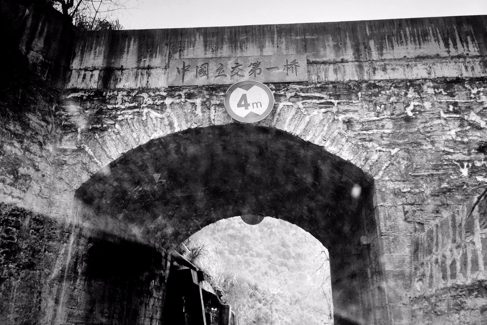于209国道2298公里界碑之处,赫然出现一座石拱桥。整座桥看上去饱经沧桑,桥洞则仅容一辆卡车通过。全桥由石块堆砌衔接而成,为当年湘川公路修筑之时的建筑工艺,是中国历史上的第一座公路立交桥,其设计者后任新中国的第一任建设部部长。由此而上,则是整个矮寨公路最经典亦最险要的路段。矮寨盘山公路