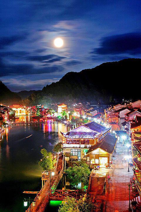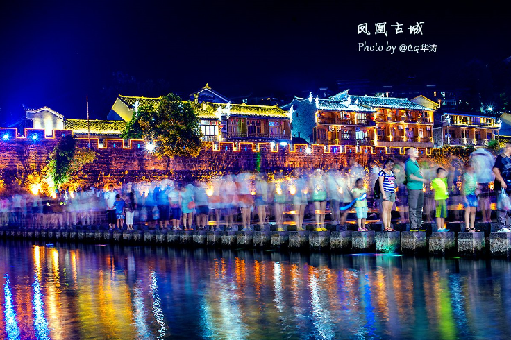 by 策马奔腾凤凰古城,白天有人文,夜晚有风情。灯火下的凤凰,好似一位风情万种的女子,让人不顾一切地投入她温柔的怀抱,在她的怀里,渐渐地忘却了来时的烦恼、躁动。华灯初上,沱江两岸的吊脚楼一派灯火辉煌,犹如黑夜中一颗璀璨的明珠跌落人间。