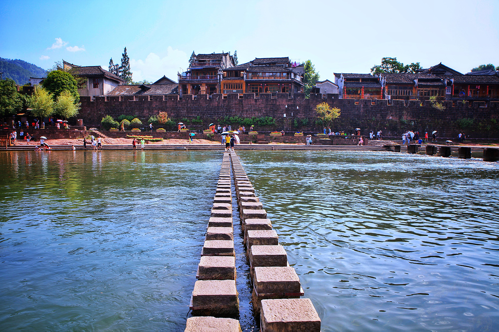 by Christina江的石墩桥,横跨在沱江之上,这也是游客最为喜爱的地方之一。来来往往的游人行至石墩桥上,从远处看,就好似行走在一副绝美的山水画之间。