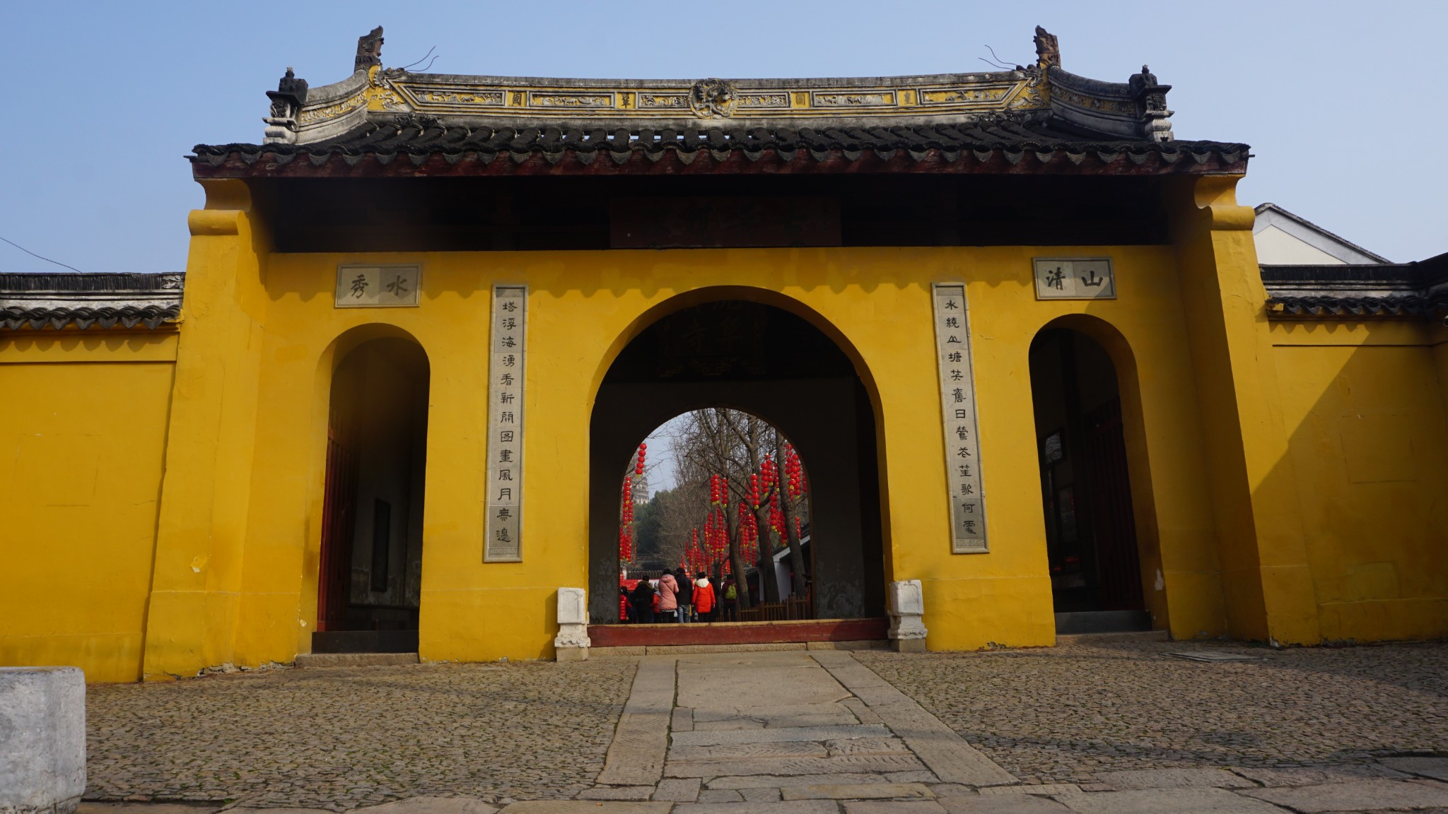 回型布局的寺庙-定慧禅寺定慧禅寺,据唐代道宣和尚撰写的《续高僧传》记载,隋开皇十一年十一月,晋王杨广(即后来的隋炀帝)在 扬州 金城殿设千僧斋,邀佛教 天台 宗实际开创者智顗大师赴宴,智顗大师应邀赴 扬州 授 菩萨 戒,途径如皋 ,发现如皋上空佛光四射,认定这是一块宝地,于是在此诛茅建庐,当时取名“定惠寺”。宋代时,由于兵火洗劫,定慧寺已经颓败,只剩下断璧残垣。宋元进士:曾任 如皋 知县的史声写过一首凭吊定慧寺的诗:寺名定慧知何代,桥古碑横不记年;古树乱鸦啼晚照,故园新碟舞春烟。七层宝塔化成路,五色云衢散上天;惟有玉莲池内水,沧浪深处老龙眠。现存的定慧寺主体建筑系明朝万历年间重建。那时,有个叫素芳的和尚带着性乾、性德两个徒弟来到定慧寺,稍加修葺就暂时住下了。性乾决心修复定慧寺。为了筹款他用油灯烤脚踝、用铁索盘胸等以示虔诚的手段向大众募化。善男信女深受感动,纷纷捐助。明万历三十年,重修寺院工程动工。不久,大殿便落成了。性乾又立誓取海外的檀香木雕刻佛像。于是他偏袒南游。后来在郁林洲从海外归来的商船上获得一棵一丈六尺长的檀香巨木并就地雕成毗卢大佛(如来佛祖)像。万历四十三年佛像运抵 如皋 ,置于大殿内。在此期间,寺中湛明上人募建了钟鼓楼,云石上人募建了藏经楼, 德林上人到 嘉禾 购买了藏经收藏。德林上人德学兼优,影响深远,定慧寺空前兴旺。禅寺,平面布局呈“回”字形,外为楼堂,内为殿宇,布局严整,建筑宏伟,这是一座历史悠久、风格独特、高僧辈出的千年古刹,人们称它为 如皋 境内的古寺之最。