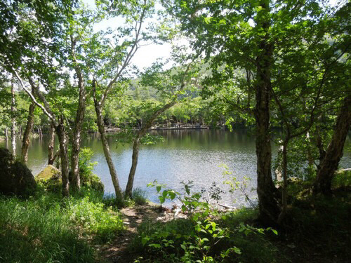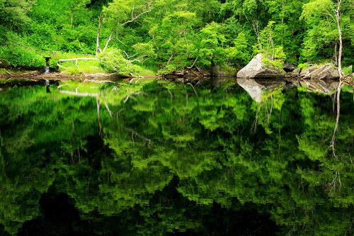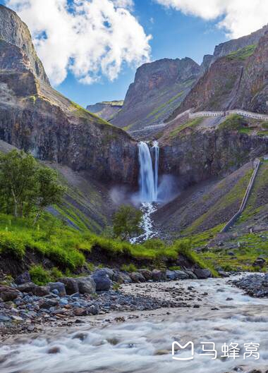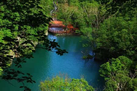 因池水碧绿深窘而得名。绿渊潭瀑布飞流直下,最高落差答26米,瀑水落于巨石而四溅,而后落入深潭。潭上水雾弥漫,与高山岳桦、旷古巨石浑然一体,美不胜收,恰似人间仙境。