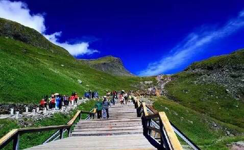 西景区最后一个景点,每年的七月初开放八月末关闭,七月中旬到八月中旬是最美的季节,满山五颜六色的花争相开放,万紫千红十分的漂亮,沿着木栈道走到尽头就是西坡王池,比小天池还要小,水面上漂着绿色的苔藓和周围的树木相映显得格外秀丽。