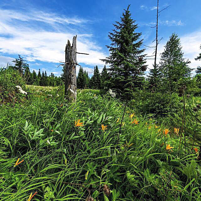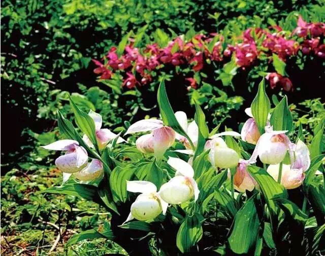 长白山是东北亚大陆唯一的原始高山植被和温带植被宝库,有2000多种植物,其中具有观赏价值的花卉就占一半左右。每年6月底-8月底,从海拔600米以上的阔叶林带开始,在山坡、林下、谷地、河边竞相开放的鸢尾、百合、大花萱草、金莲花、塘松草、藜芦花等,点缀着长白山麓,放眼望去,漫山遍野姹紫嫣红,一派生机,堪称"天堂花园"。