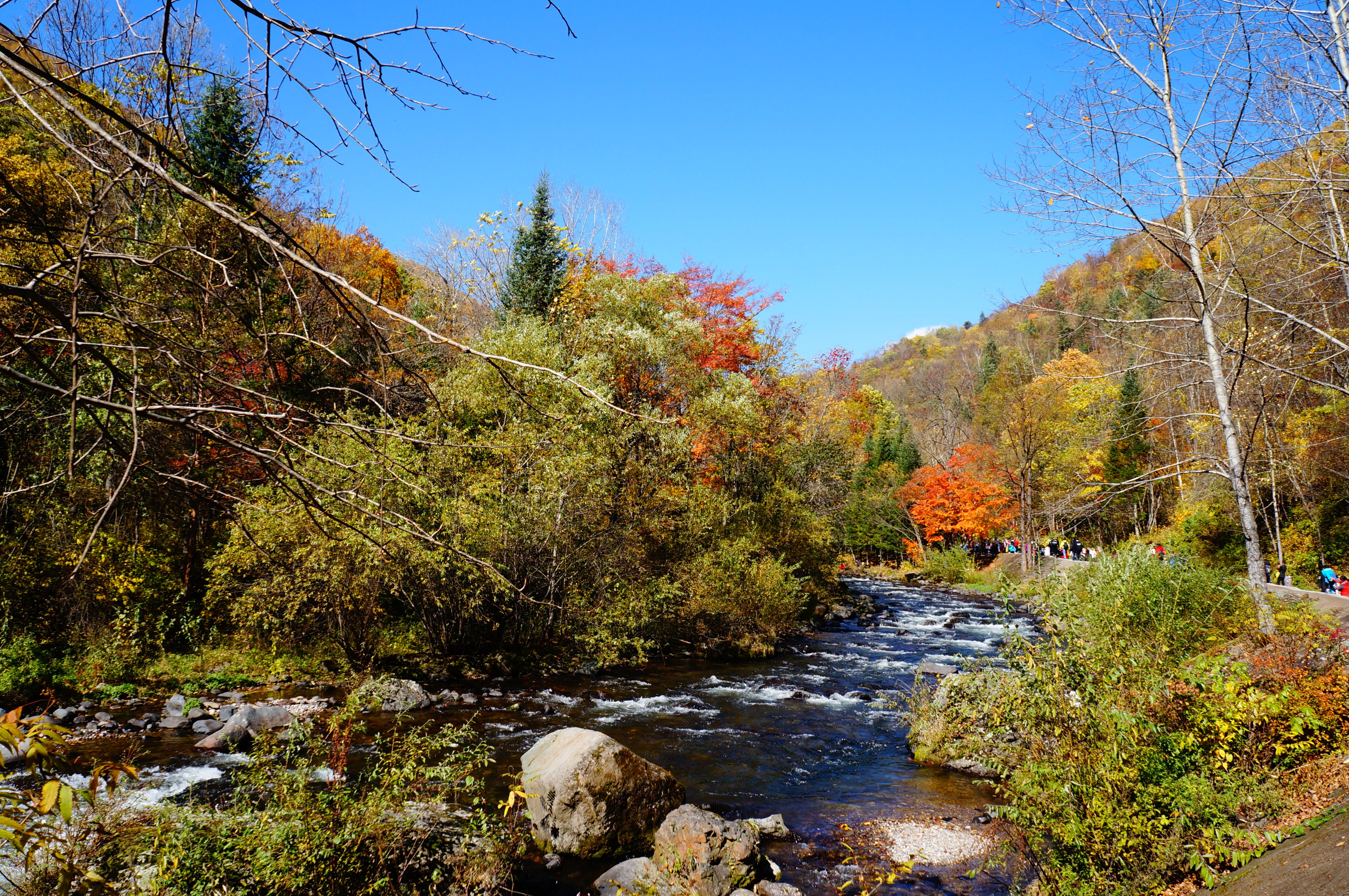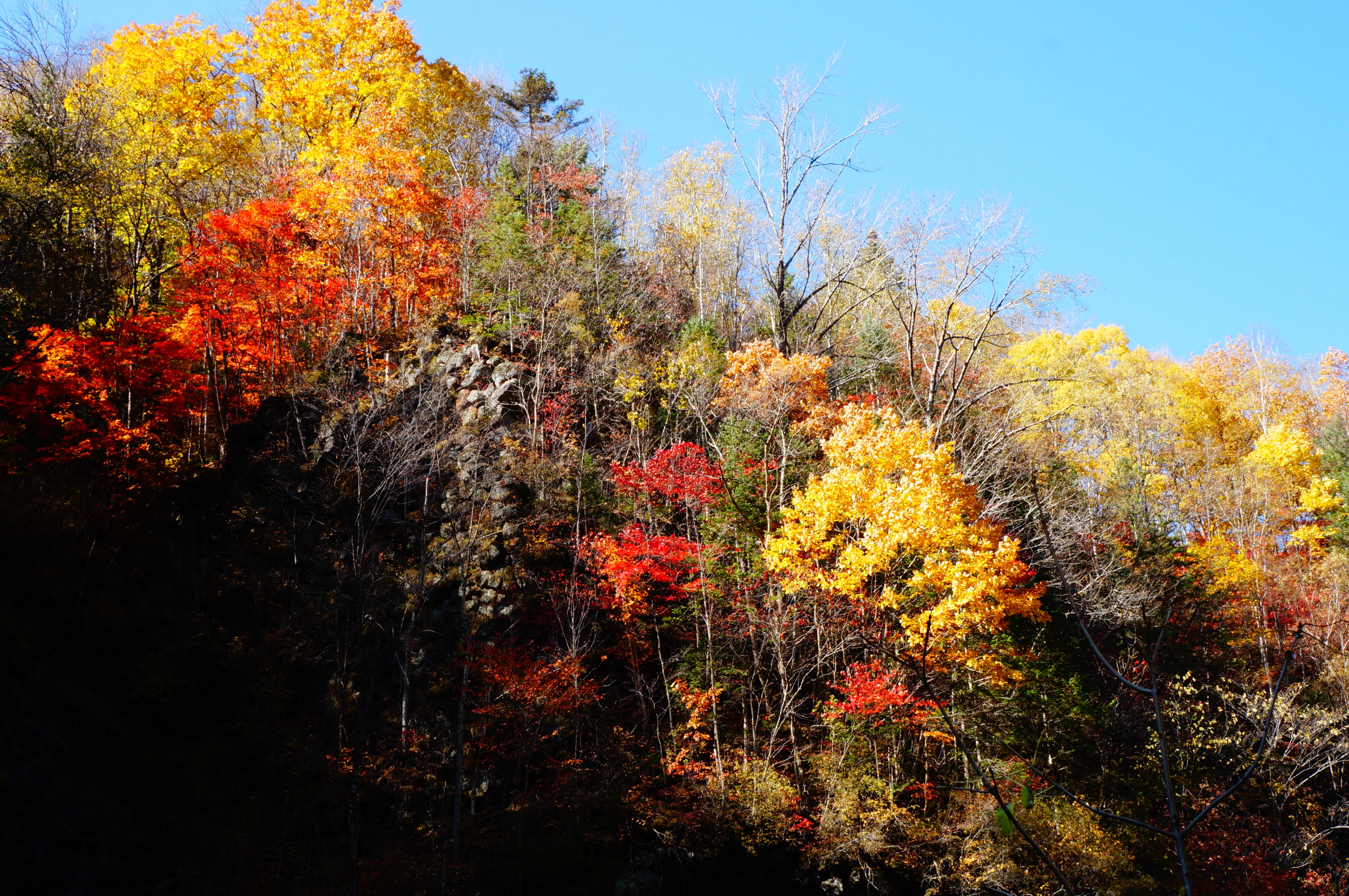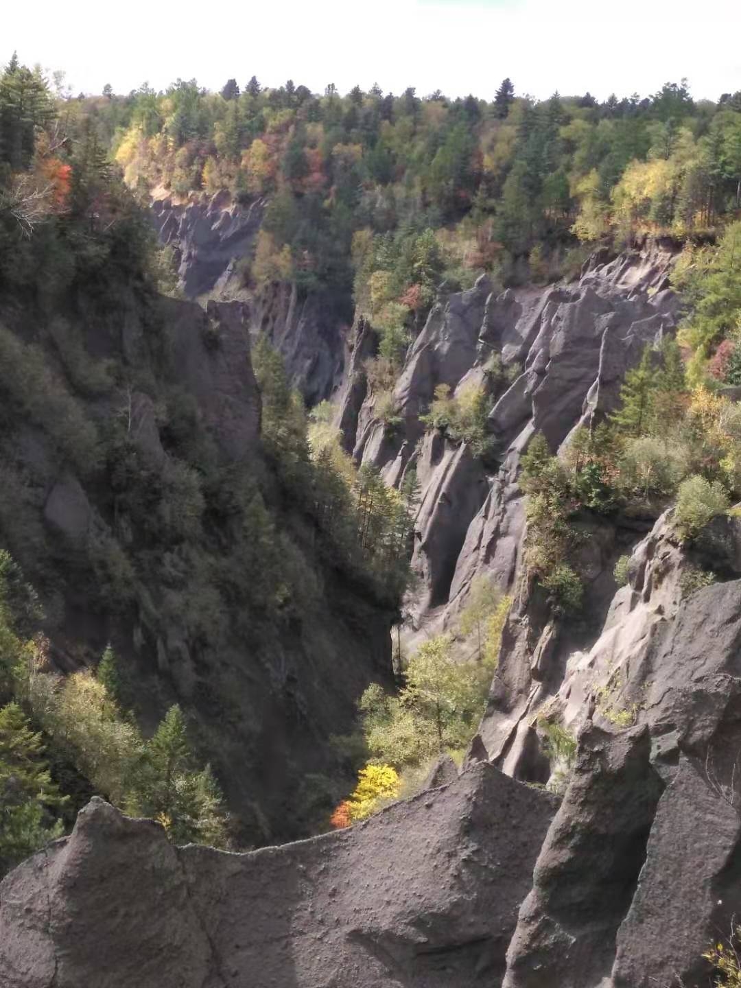 大峡谷又称『火山熔岩林』,在穿过一片茂密的原始红松林后就能看见一条长约十五公里,宽二三百米,深七八十米的大峡谷。这里是我国规模最大的火山岩区峡谷地貌,具有险、幽、奇、秀、美的特点,是