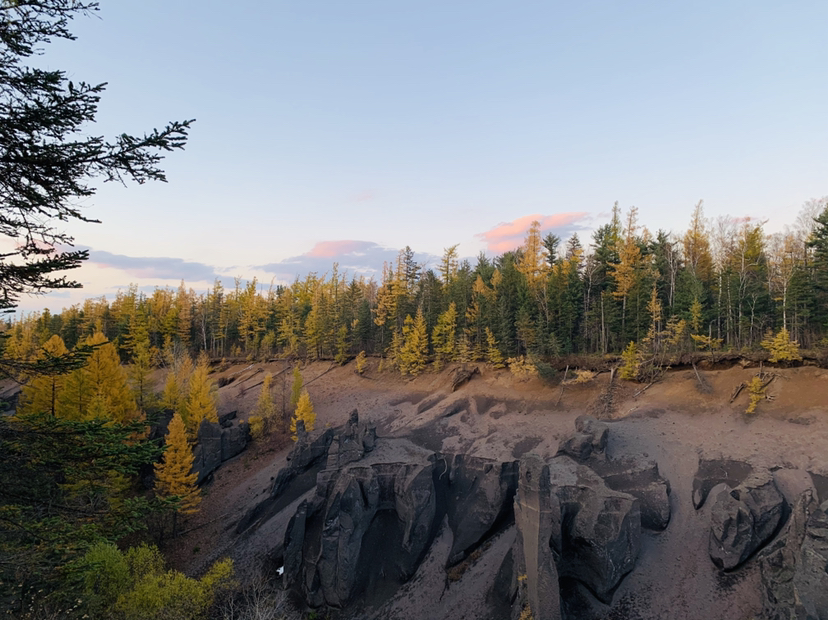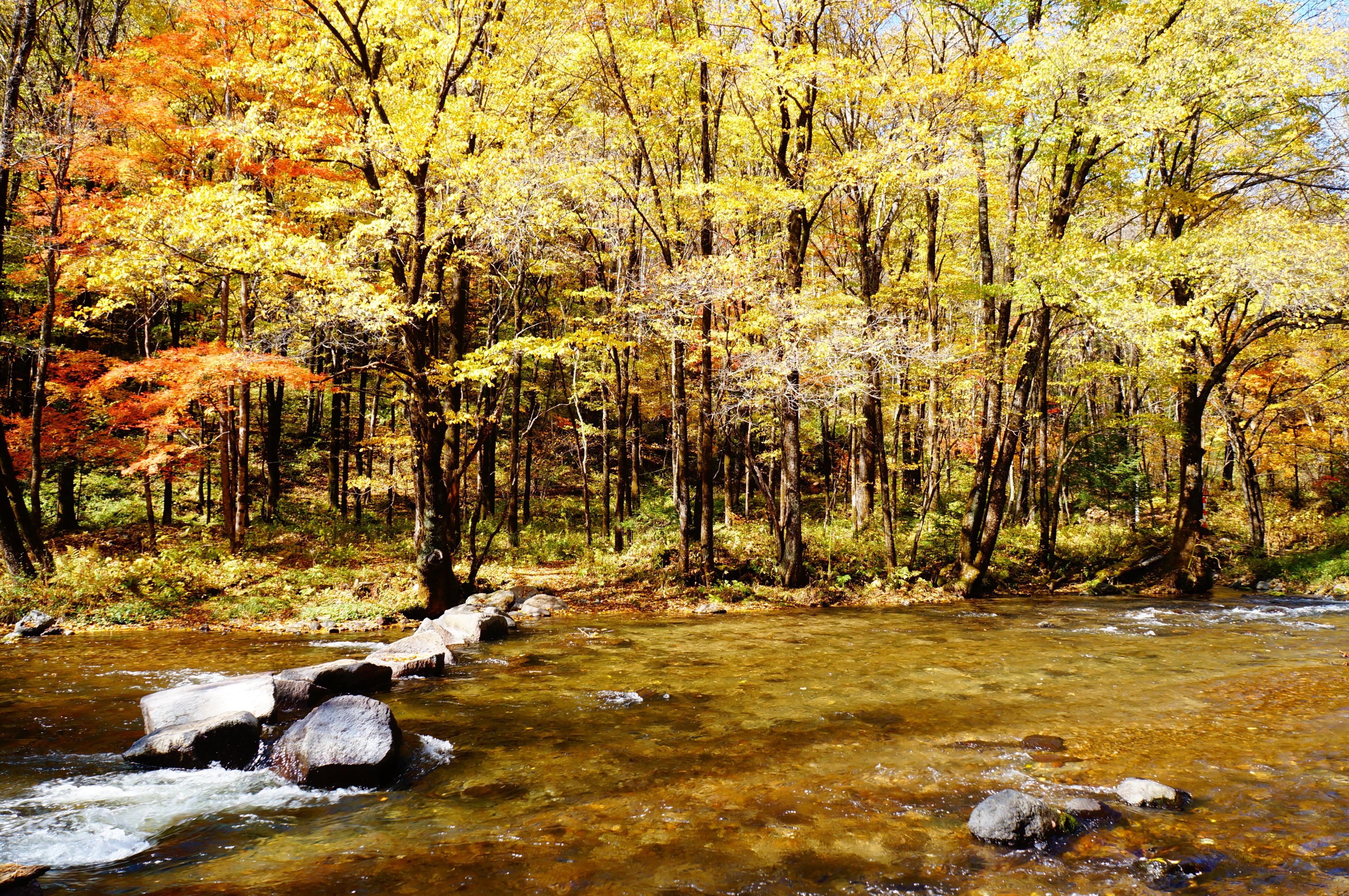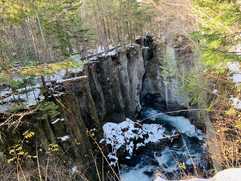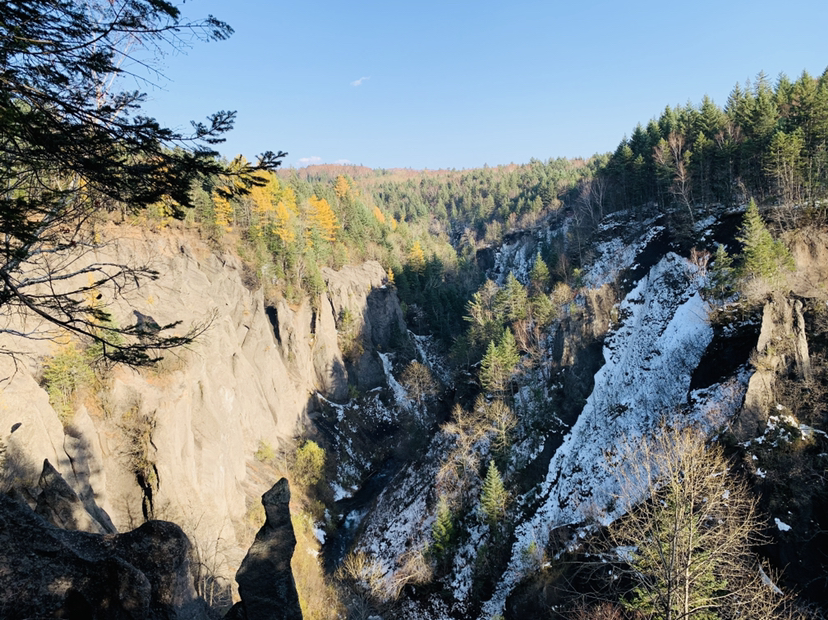 大峡谷又称『火山熔岩林』,在穿过一片茂密的原始红松林后就能看见一条长约十五公里,宽二三百米,深七八十米的大峡谷。这里是我国规模最大的火山岩区峡谷地貌,具有险、幽、奇、秀、美的特点,是