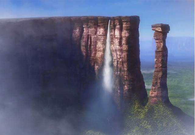 4.《天外奇迹》里面这个画面,其实是世界上最高的瀑布,委内瑞拉安赫尔瀑布的真实写照。