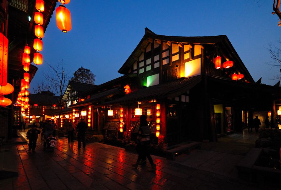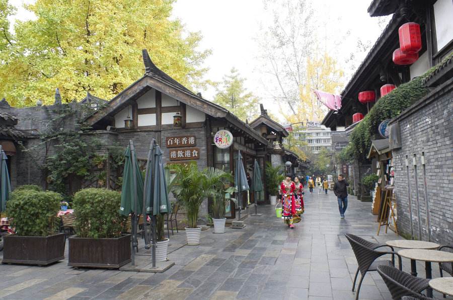 知名的步行商业街,由一大片清末建筑风格的仿古建筑组成,拥有数量众多的酒吧、餐饮名店,是西蜀历史上最古老、最具有商业气息的街道,著名的武侯祠也在其中。
