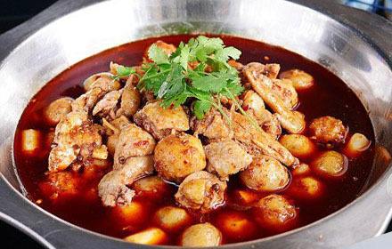 芋儿鸡,可谓是四川美食里的另一道色香味俱全的美食。将精选的鸡肉、芋头放在一起炖,配上花椒、葱、生姜等作料,当然,最重要的是少不红油。鸡肉滑润可口,芋头酥而不烂,入口即化的感觉实在让人难以忘记。