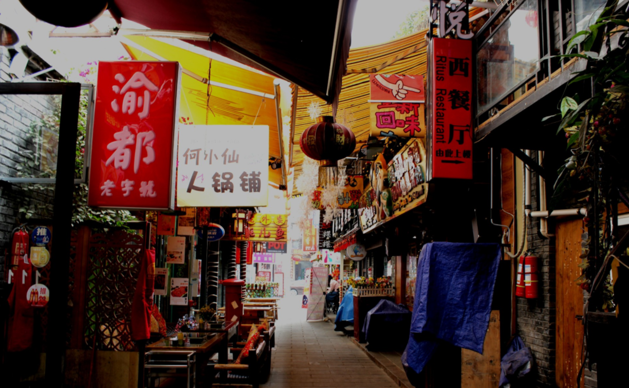 香香巷(儿)很窄,美食却很丰富:里面汇集川菜、火锅、烤肉、西餐、泰式、甜品、茶馆、酒吧等,甚至看川戏的地方都应有尽有。