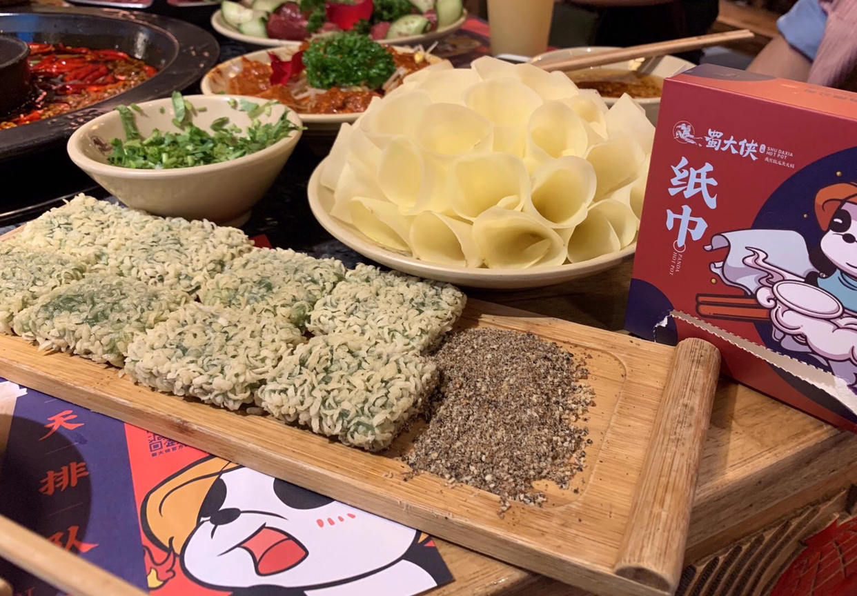 这家是香香巷里面开的最早的一家火锅店,也是走过路过最飘香的火锅,九宫格的重庆老火锅,木底红字的招牌就很抢眼,长木头凳子里外都可以坐,老板也是重庆人。