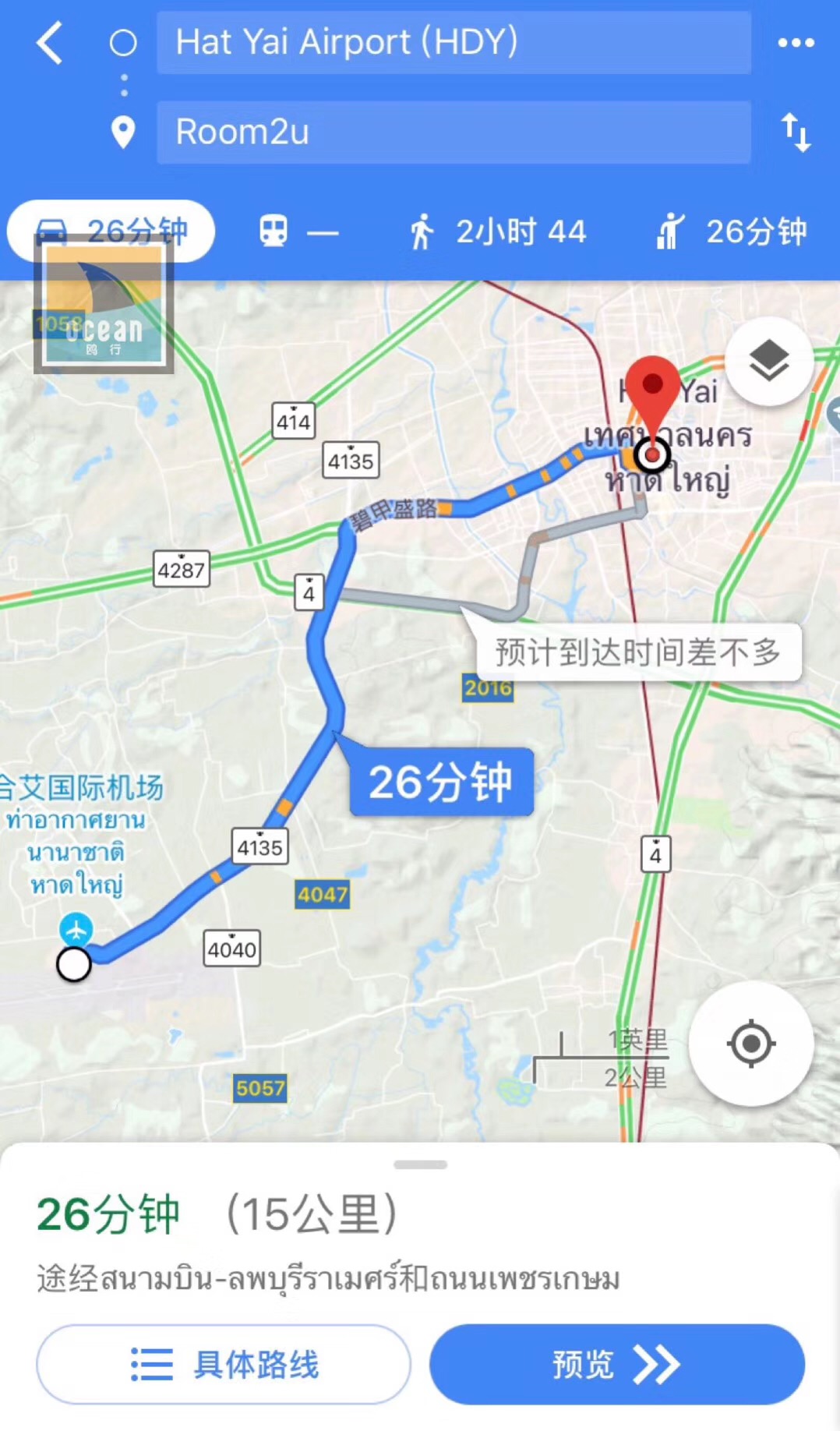 4. 旺季订12:30以前抵达 合艾 的航班,回程订14:00以后的航班。淡季订9:00以前抵达 合艾 的航班,回程订14:00以后的航班。若航班在此时间外,可选择在 合艾 市区住一晚,为此CICI还特意安排了 合艾 最闹市的酒店ROOM 2 U给大家,从 合艾 机场到 合艾 市区的交通打车大概15公里,26分钟车程,打车的话单程大概是400泰铢左右。当然看到这篇文章的小伙伴预定ROOM 2 U的房间CICI可以免费安排车车接送各位哦,还不快点赞收藏。