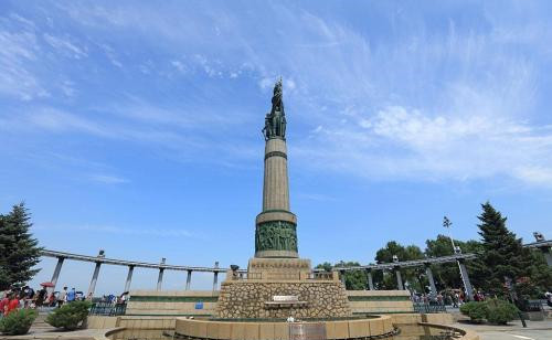 顺着中央大街走到最北端就是防洪纪念塔,可以顺便去看看。坐落在松花江南岸,夏季的松花江畔很适合散步,冬季冰封的江面上有乘马车、玩雪圈、滑冰等丰富的活动。