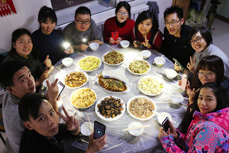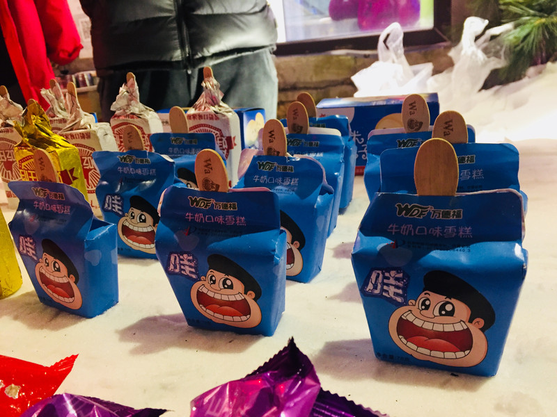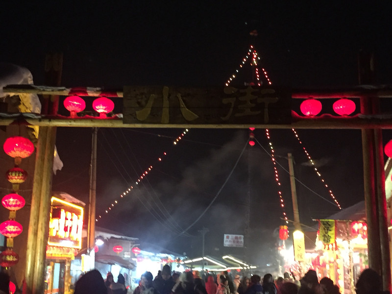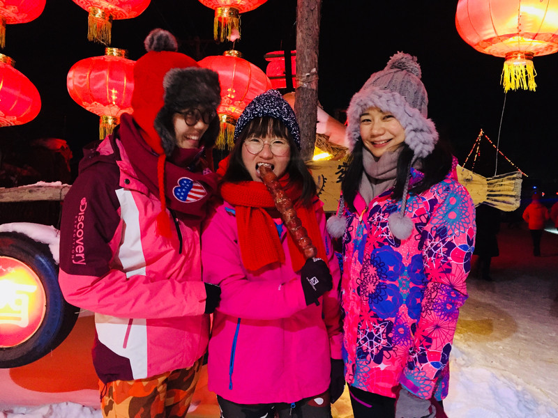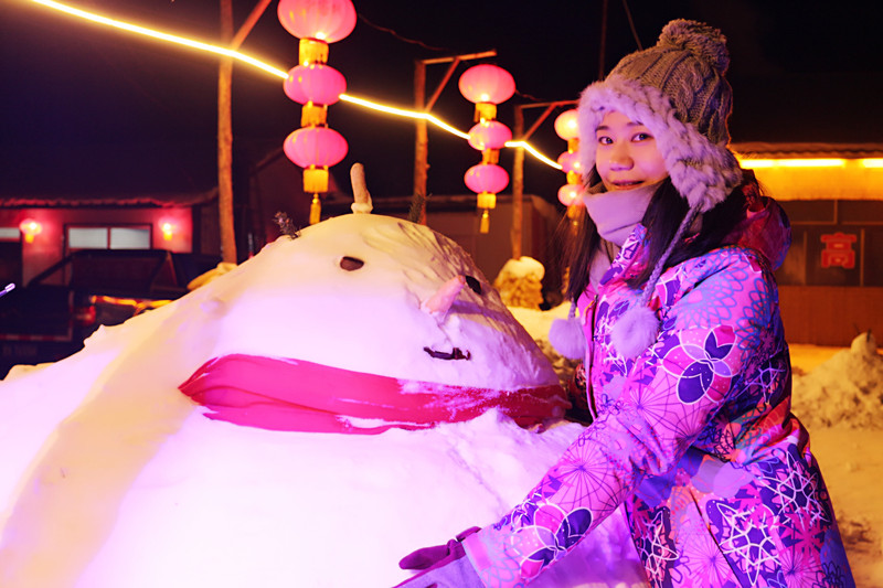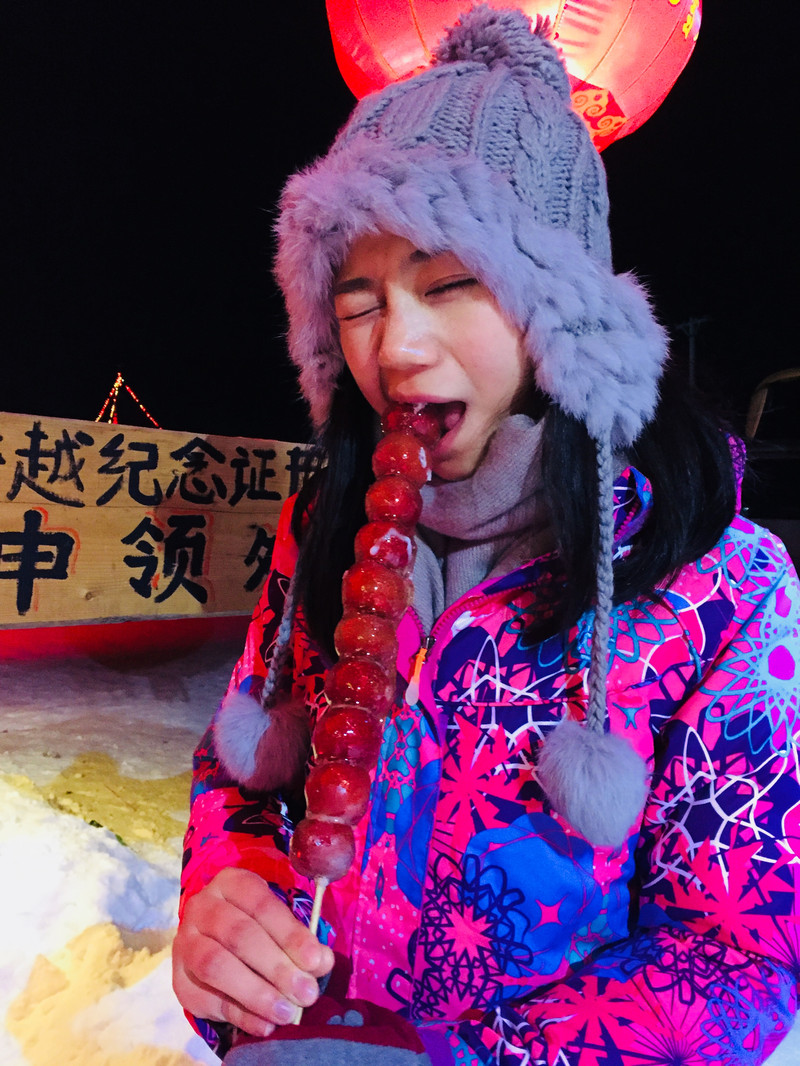 雪谷小街上吃冰糖葫芦、放烟花、跳篝火