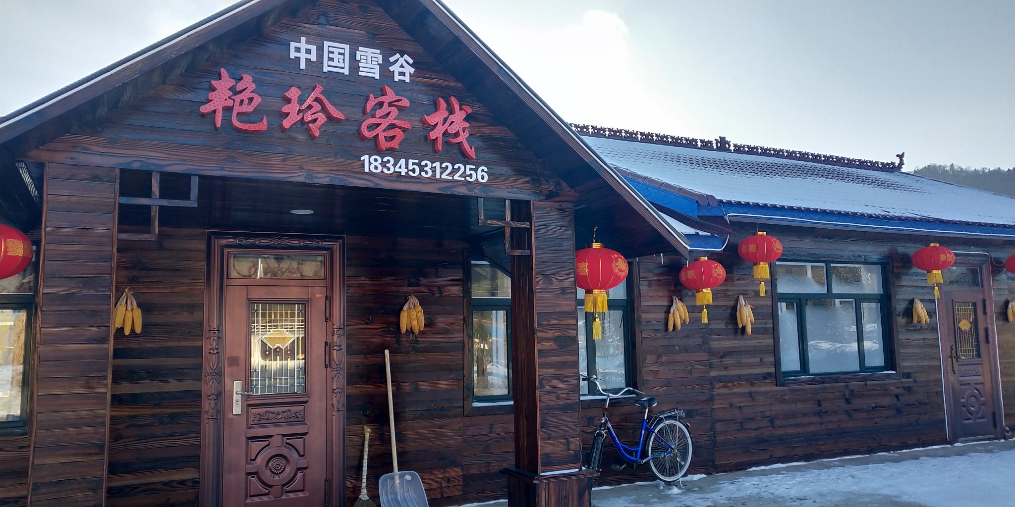 在小街溜达完就返回 艳玲客栈 了,这里要说的是,雪谷的住宿一定要提前预定,因为冬天是旺季,雪谷不大,但是游客很多,所以不提前预定很容易没地方住,我们昨晚刚到的时候,就看到有游客拉着好几个拉杆箱在满雪谷找住的地方,在 东北 零下几十度的晚上超级可怜。。。。