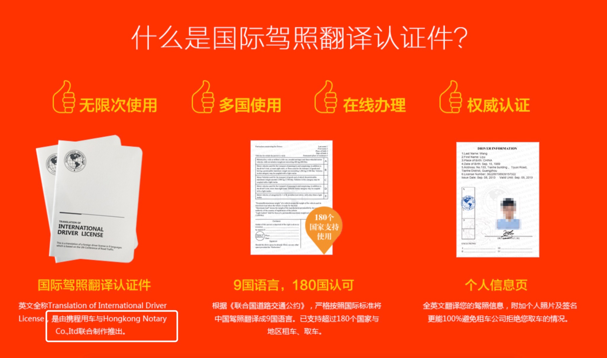 3、国际驾照翻译认证件。(携程海外租车——平台推出)