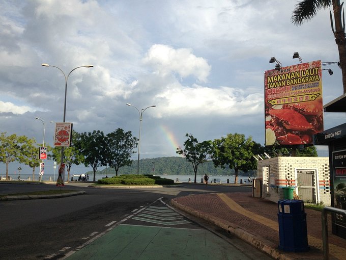 上天给早起的我们最好的礼物,挂在加雅岛上空的彩虹。