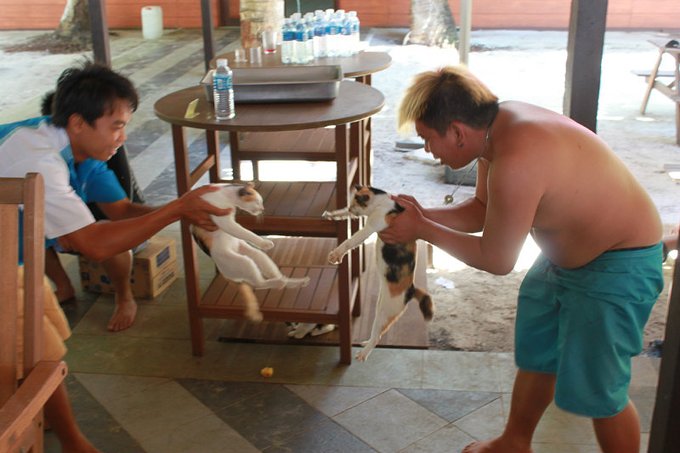 碰到两个特别搞笑的当地人在“斗猫”哈哈~