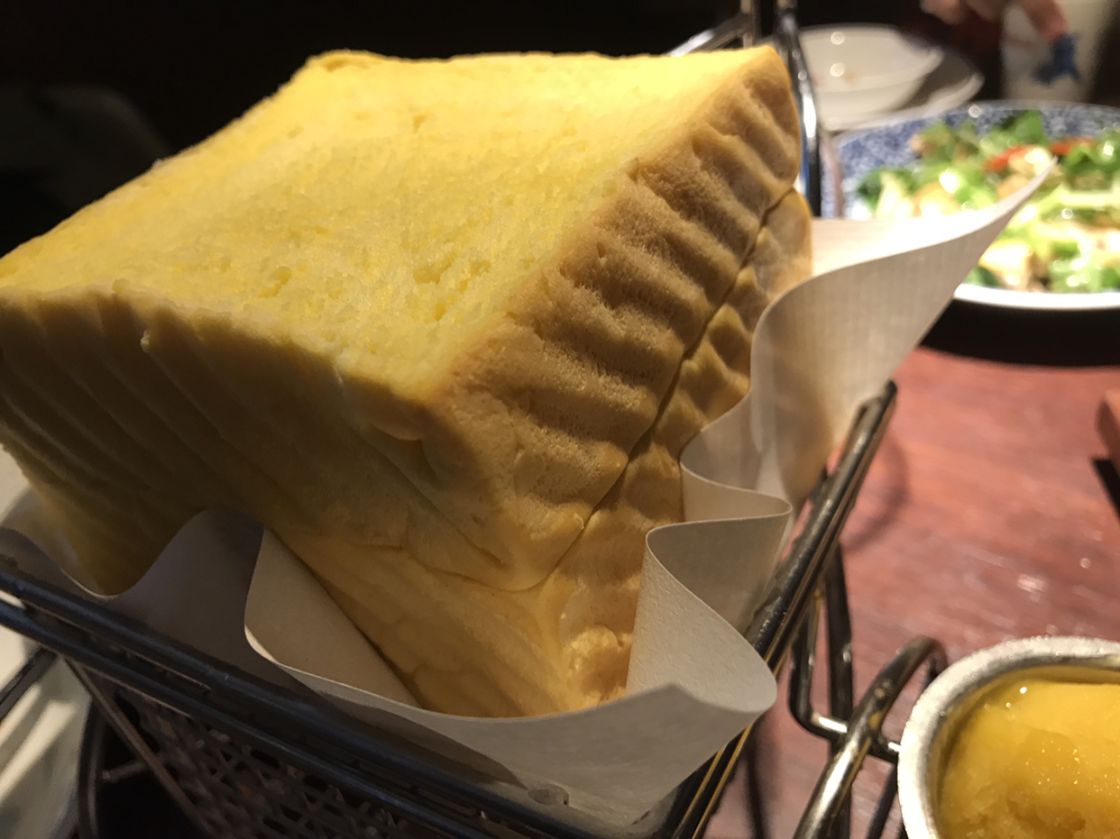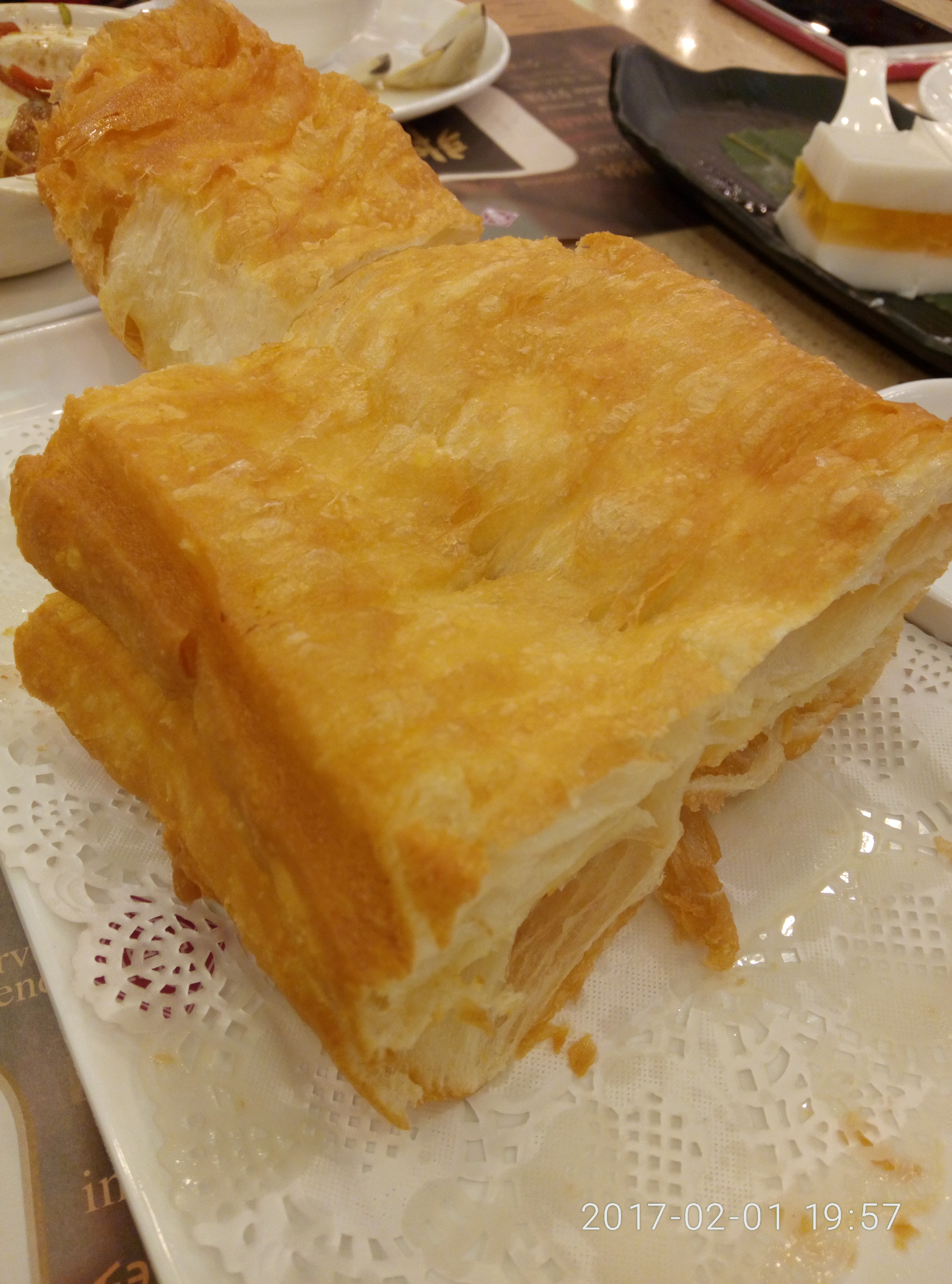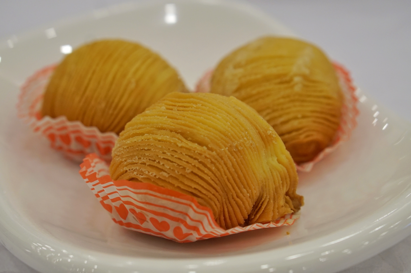 招牌菠萝包也超级好吃,但是特别大,比小朋友的脑袋还大,一份6个,上来特别壮观,基本上不用吃别的了。但是,谁让它好吃呢,上面那层面包壳酥到一咬就碎,边吃边掉渣的节奏,里面流淌的菠萝馅躲在面包柔软温暖的怀抱里,让人每一口都很满足。所以,虽然半打很多很大,我还是毫不犹豫地点了,吃不了留着回去当早餐。