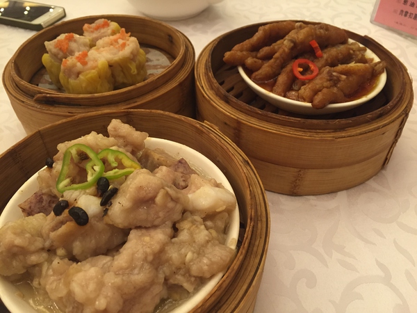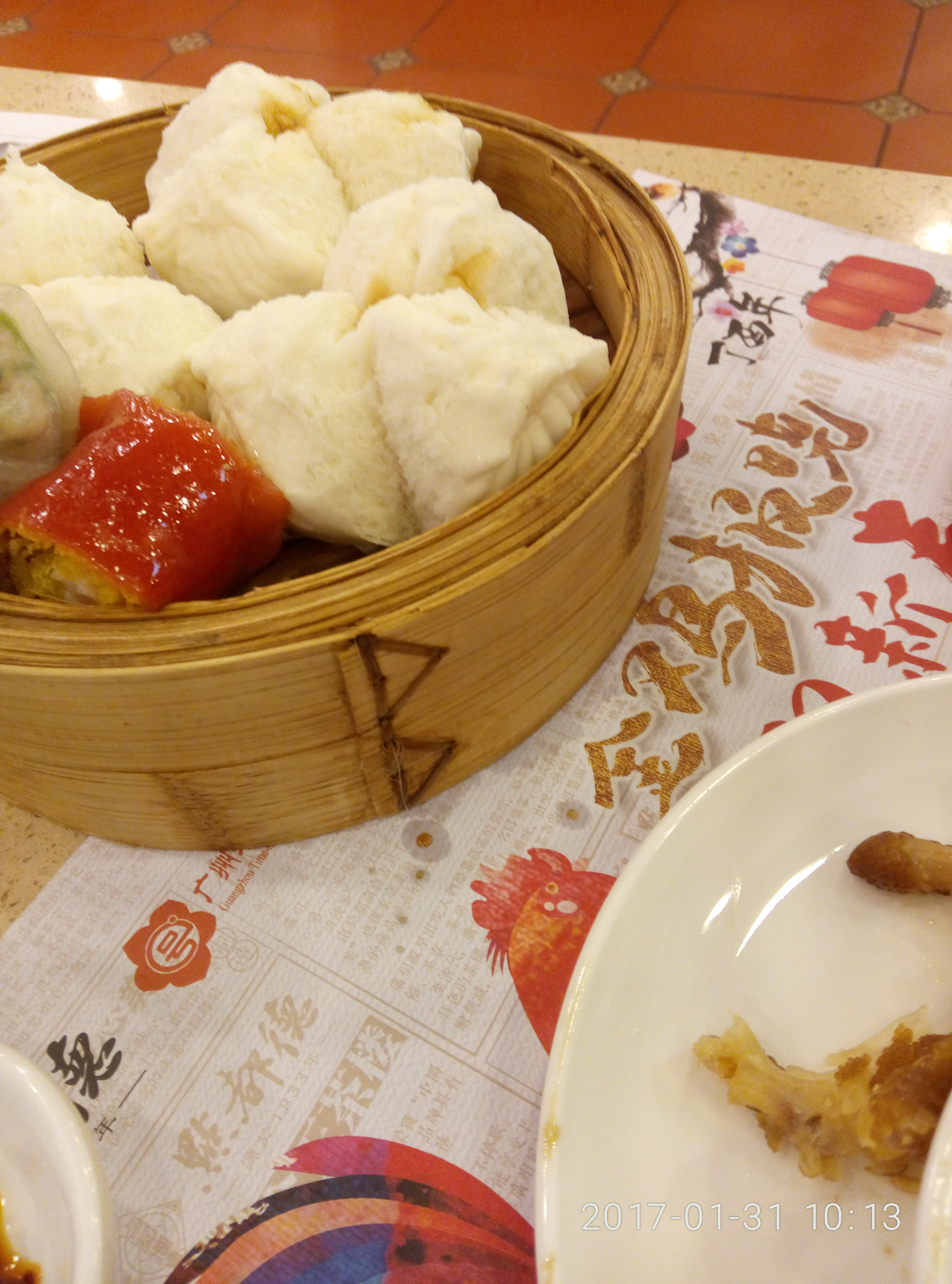 凤爪入味劲道,但是在脱骨和绵软上,个人感觉不及陶陶居。糯米 八宝 鸡,打开荷叶,拨开糯米,你会非常惊喜,里面是满满的虾米、瑶柱、咸蛋黄、板栗、鸡肉,马蹄片。鸡肉入味香浓,其他辅料也各有千秋,非常推荐。莲蓉包偏甜,喜欢甜品的可以尝一下。