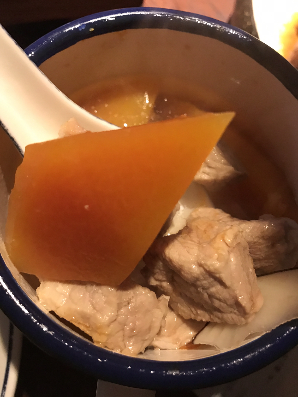 ,自然要尝靓汤,这碗红豆鱼汤里,红豆已经煮化,鱼肉干保持了内部的韧劲和鲜美滋味,那个硬硬的洋芋状的食材,我至今没搞懂。但是,总体下来,我觉得炳胜品味会是我以后还会光顾的地方,下次要来吃黑叉烧!~