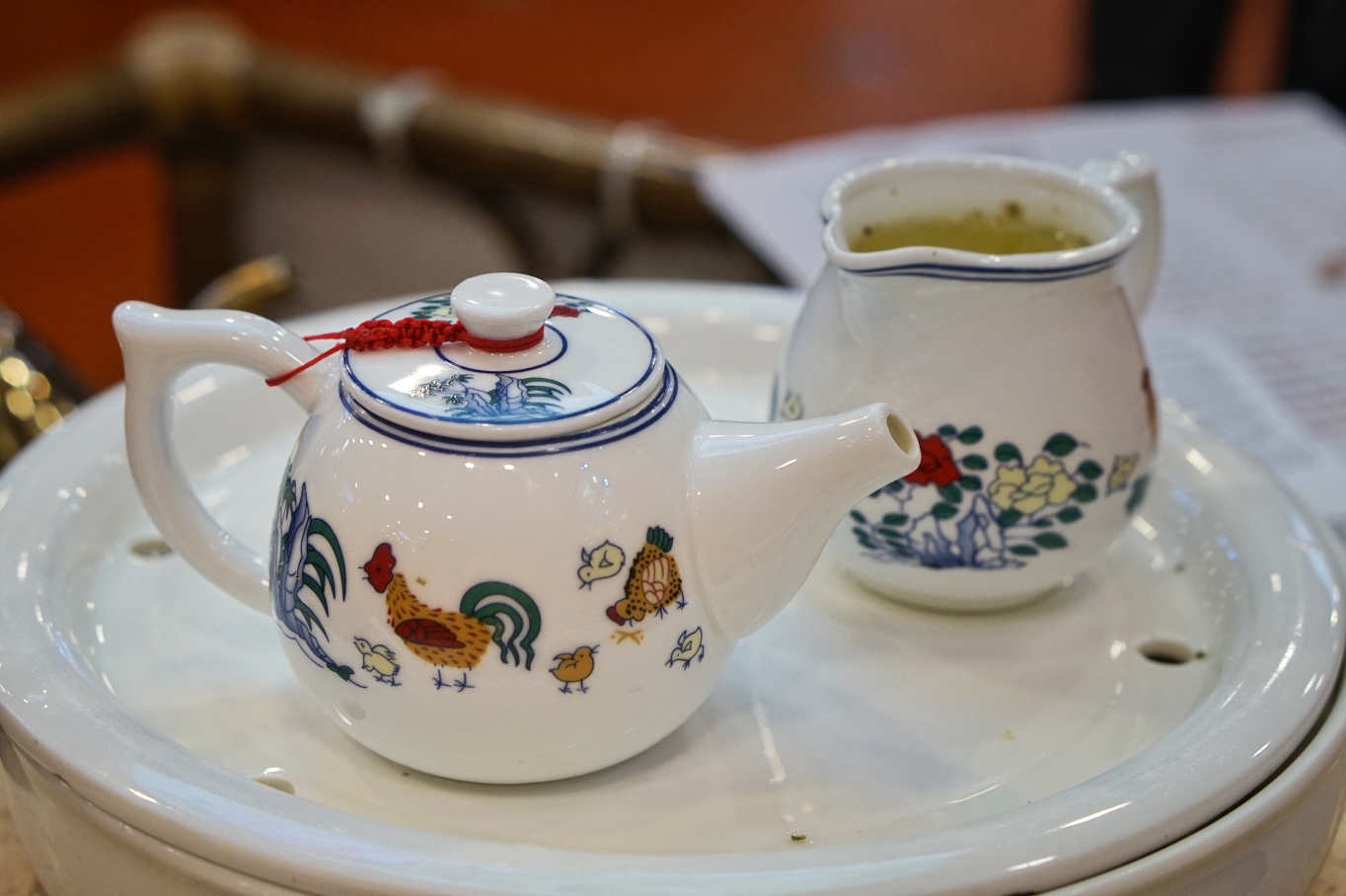 茶楼的茶水可选范围还是很大的,有红茶、绿茶、乌龙茶、花茶、 普洱 茶、菊花茶、玫瑰茶、铁观音等等。我们带着4岁的赵小猫,自然选了明目败火的菊花茶。