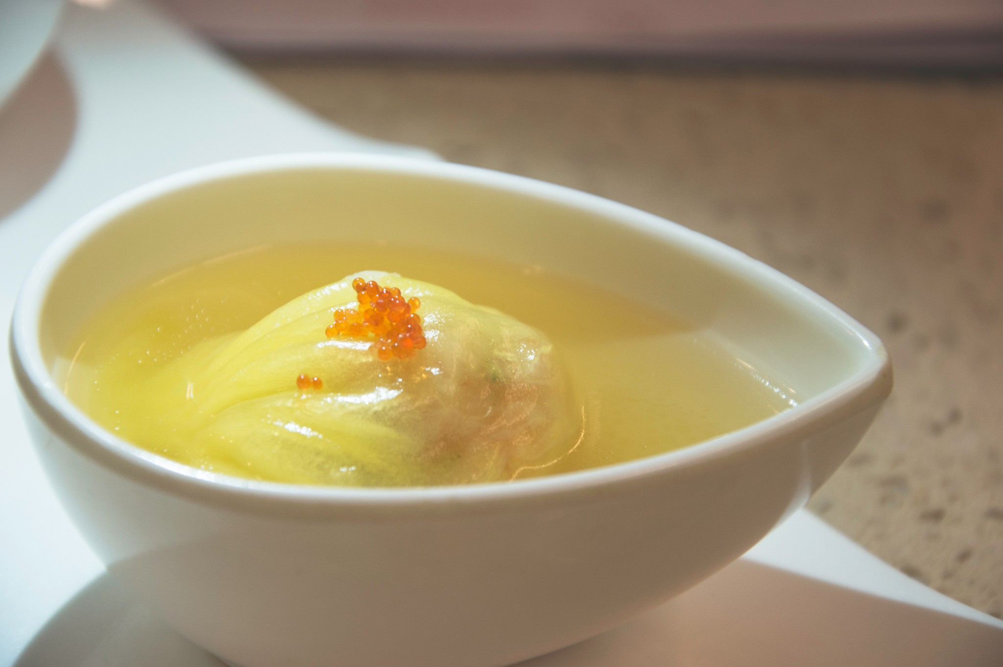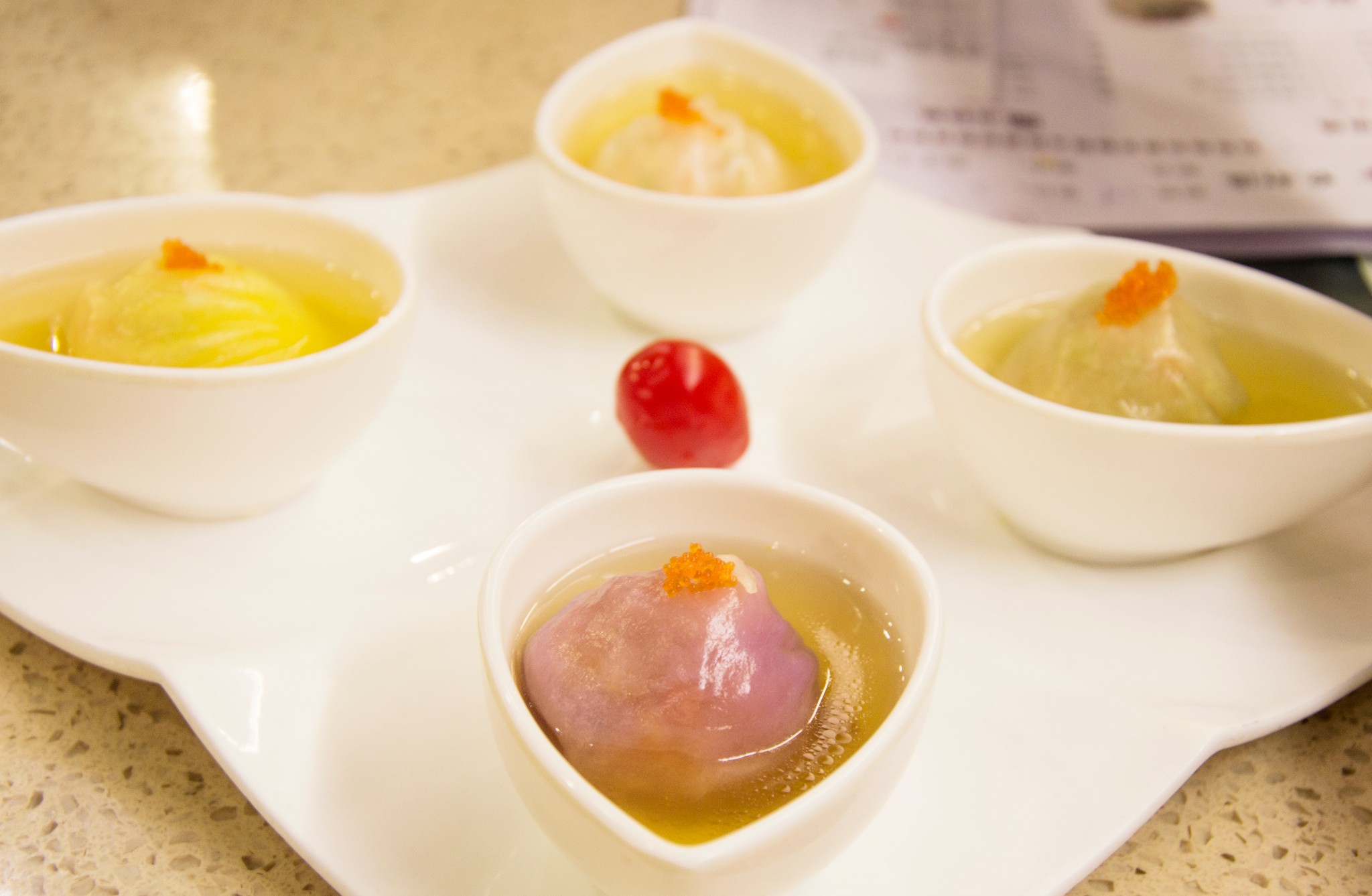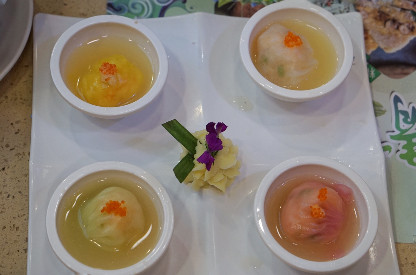 颜值更高的是四色虾饺,四个小锺,颜色各有不同,像极了春夏秋冬,里面的点心精致而小巧,皮吹弹可破,里面的馅料似乎随时满溢而出。