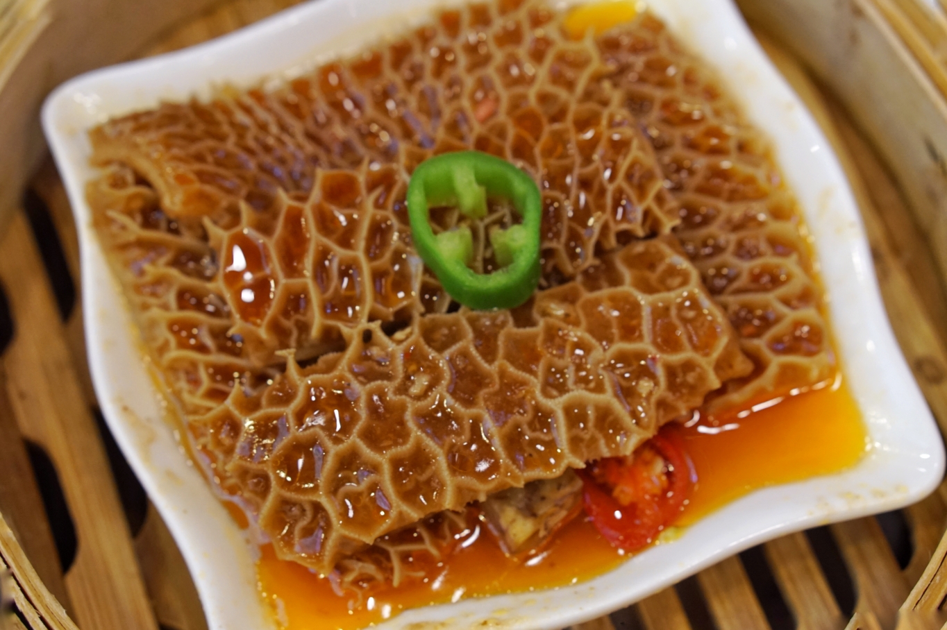 金钱肚这种蜂窝状的构造,让它入味深却依然非常劲道,牙一碰可以吸吮到满满的汁水。