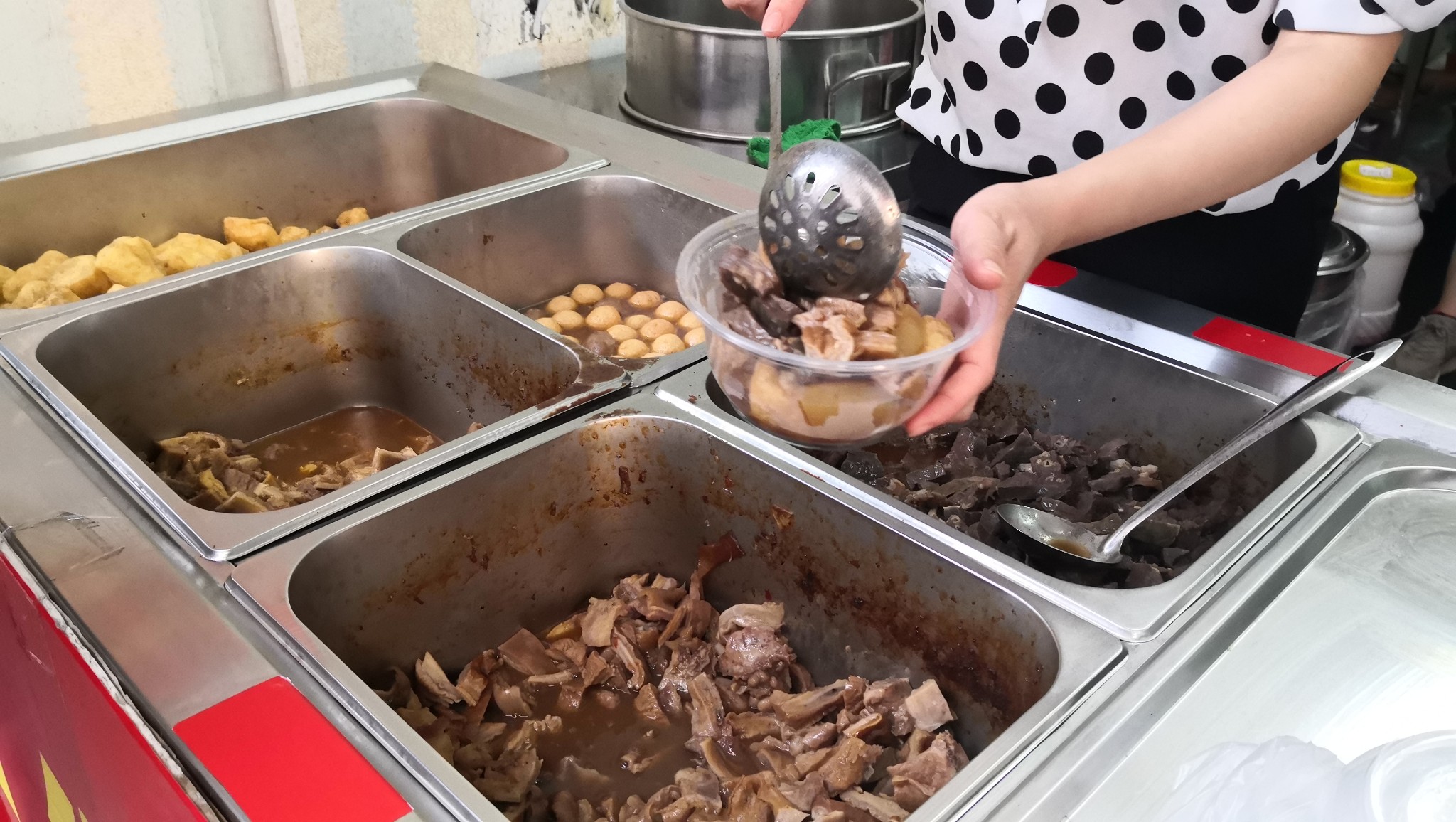 路边的牛杂:本想说好好找找阿婆牛杂,但是第一天真的有点累了,看到路边有就随便挑了一家小店进去了。要了一份萝卜牛杂,萝卜很好吃,炖煮得糯糯的,而且又充分吸收了汤汁,入口汤汁的浓厚就在嘴里了,此外牛肚、牛津、牛肠也不错吃。