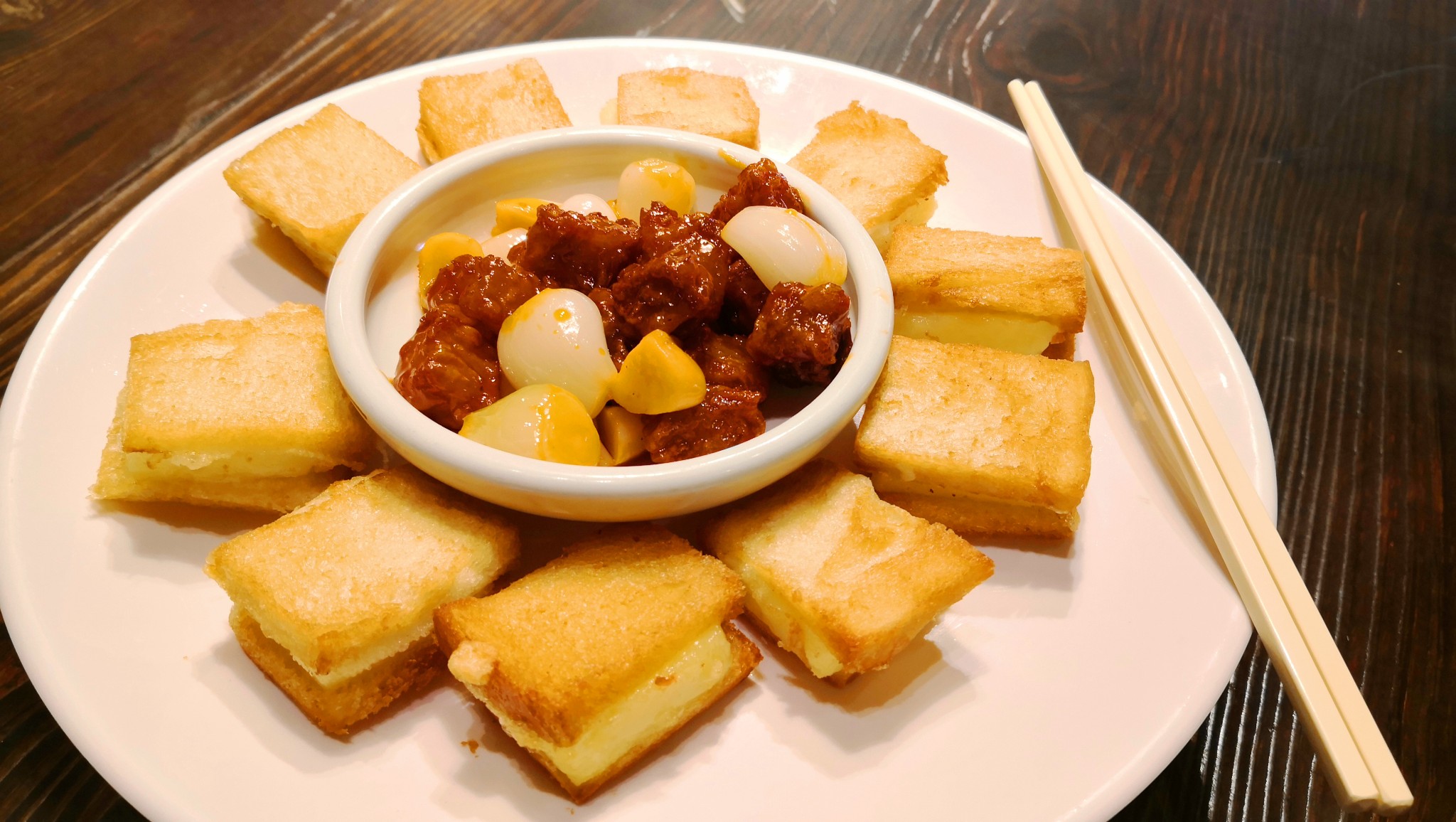 一口酥豆腐是陶陶居的招牌菜,外表酥脆、内心柔软,一口一个,可以感受硬朗与丝滑的碰撞。