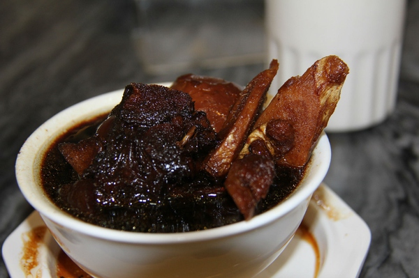 的甜醋加上姜,熬煮而成。一般一小碗10元,有两三块猪脚,还有一个蛋,味道都有点甜甜的,最喜欢那个姜醋蛋了,一天多吃几个都不成问题。听说这个东西很补,特别是对女生特别好!(知乎er们,有没有能传授下厨艺的,想在家自己做,以解相思之苦!)