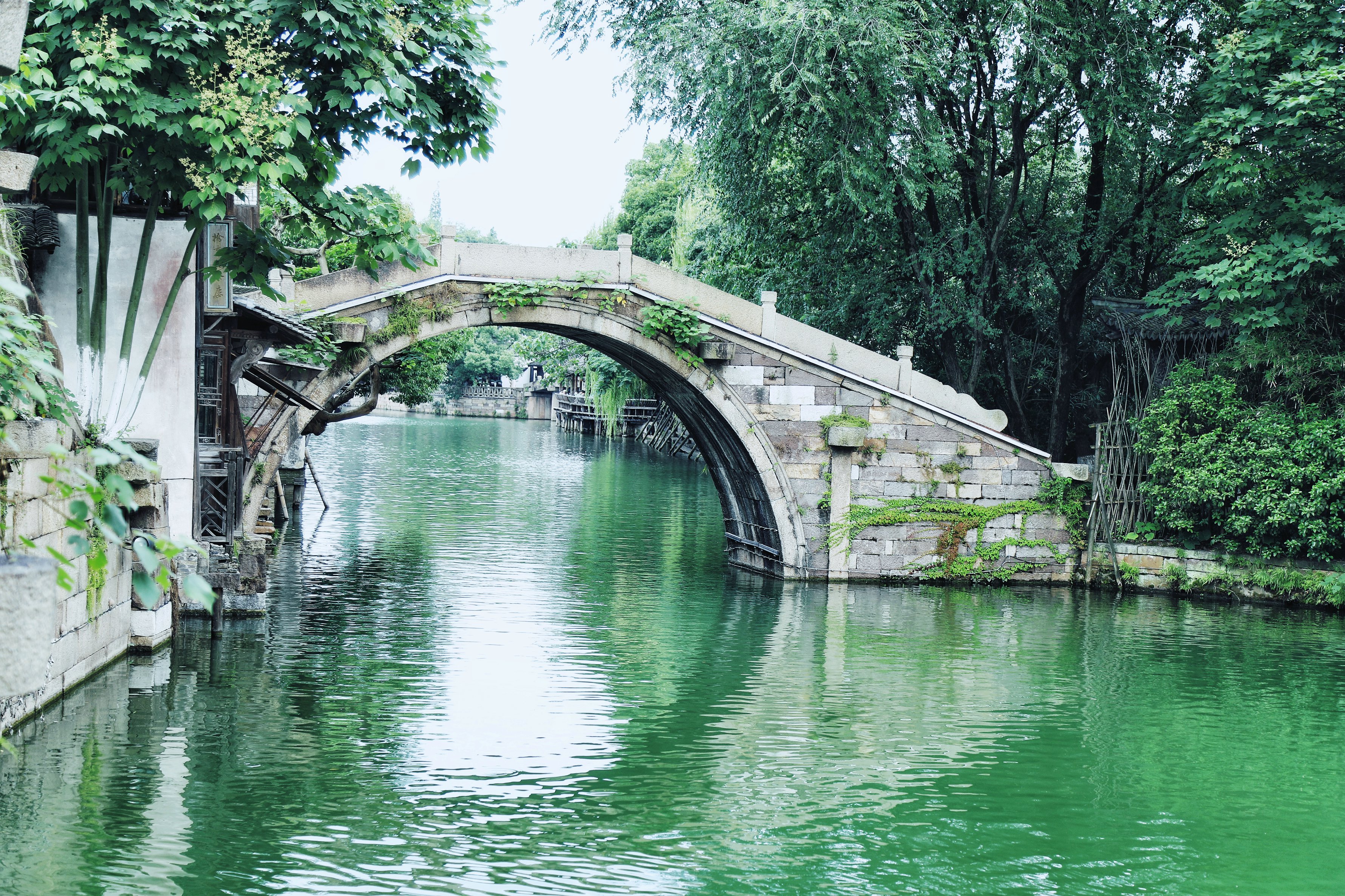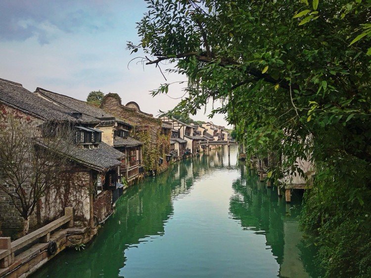 西栅景区后半段,随便河畔走走,都能看到小桥、流水、乌篷船等江南经典元素。