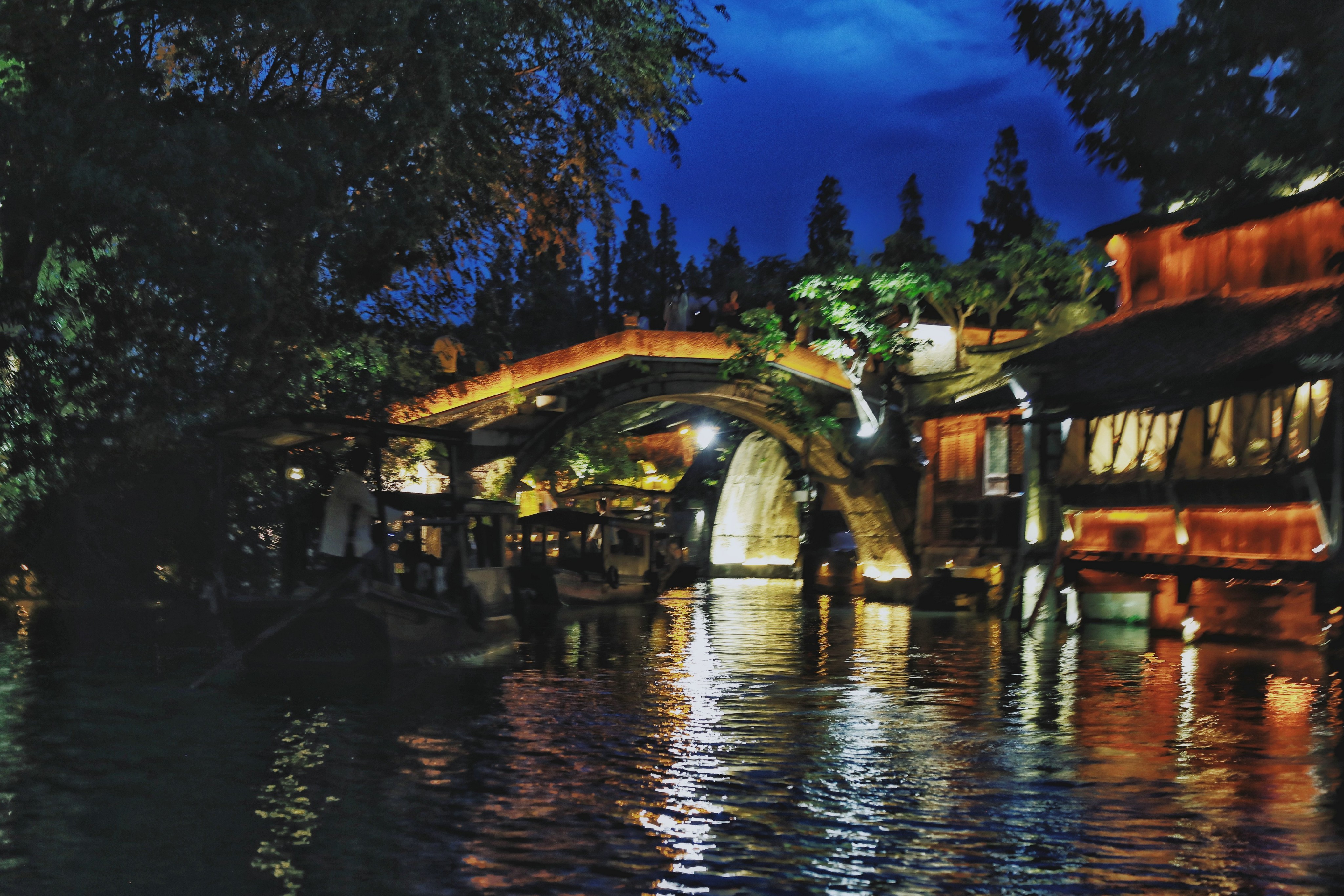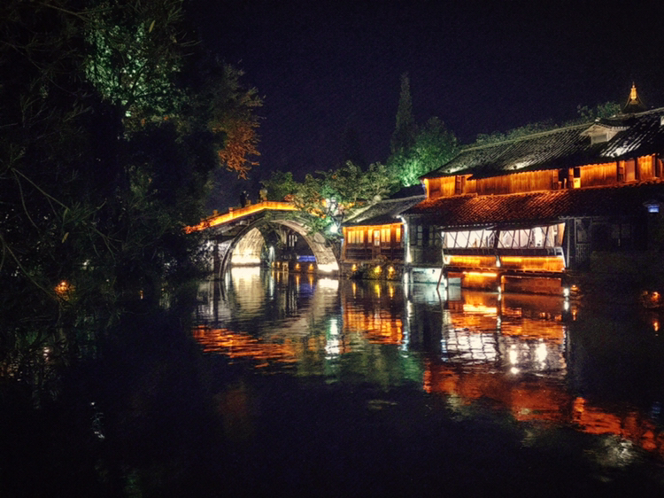 当然,夜色下的西栅是不可错过的,桥上人来人往、桥下流光溢彩,不停有乌篷船载满游客经过,如梦如幻。