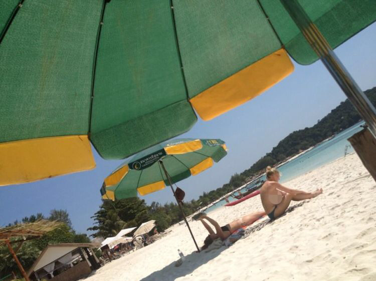 学好证没事了,还有2天的闲暇,我每天就到各个海滩带块salon,找个地方去发呆,看海,偶尔在树下,光影晃着眼,极具催眠效应,我也很快就睡着了。。。一觉醒来,再找个海边的餐厅发发呆,吃吃饭,有时一杯mango shake +大虾炒饭也才只要20多块人民币。而moutain resort的前面的海滩是观赏日落的最佳地点,在洁白安静的沙滩上,整个心都会陶醉其中。