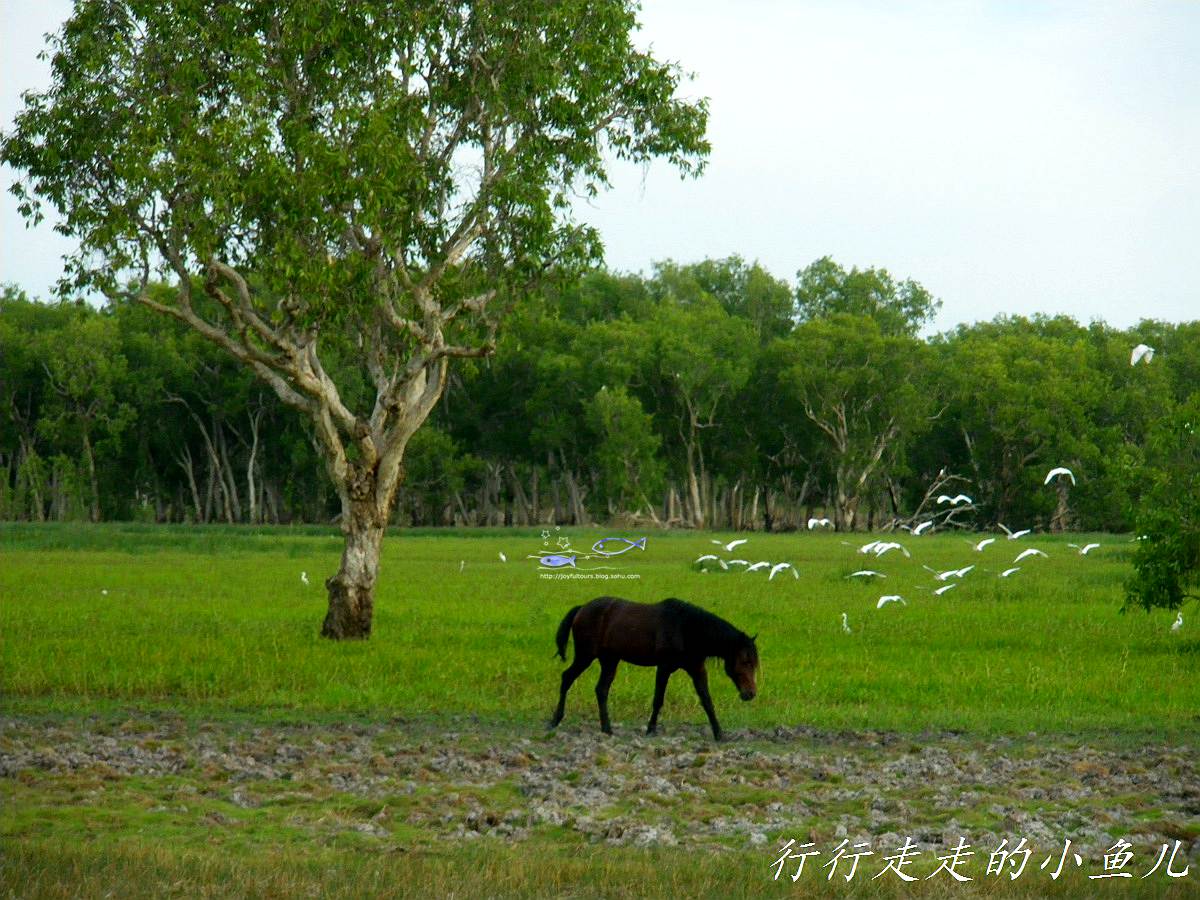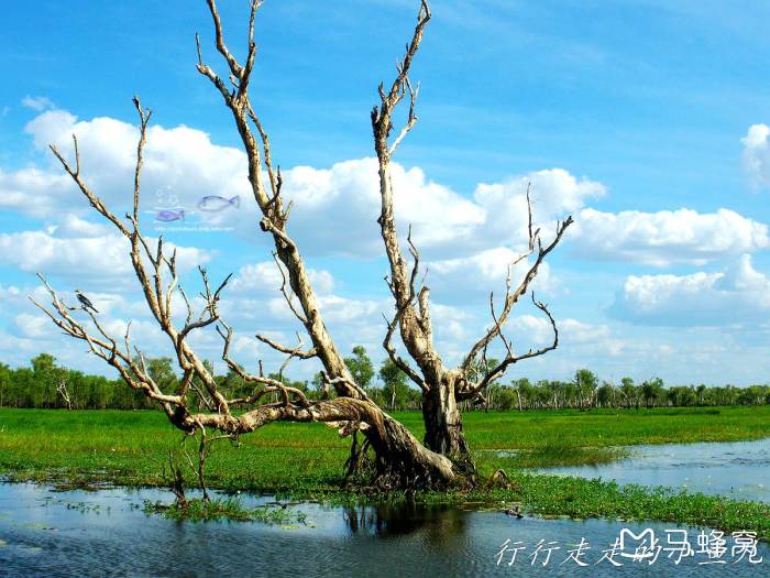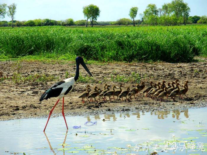 记得我坐船游览Yellow Water的时候,因为水中有鳄鱼的缘故,船身周边都加固了半人高的铁丝网,有些怕怕!最可笑的是船上居然有橘红色醒目的救生衣!我跟船员开玩笑说既然有鳄鱼,救生衣有神马用处?船员嘿嘿一笑,非常神秘滴说“是为了吸引鳄鱼哒!”