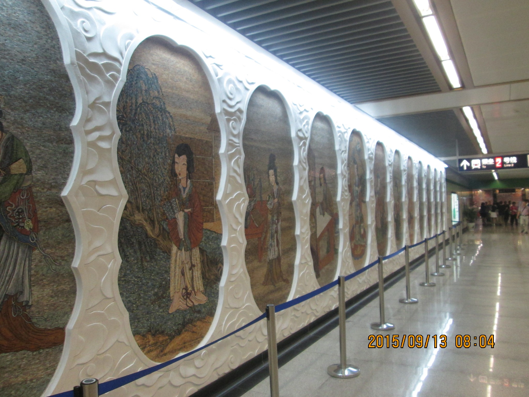 除了人给我的好印象,的地铁站也非常有特色,那时候实在忍不住就拍了几张。。。哈哈,作为六朝古都的连地铁站的主题都那么有范儿