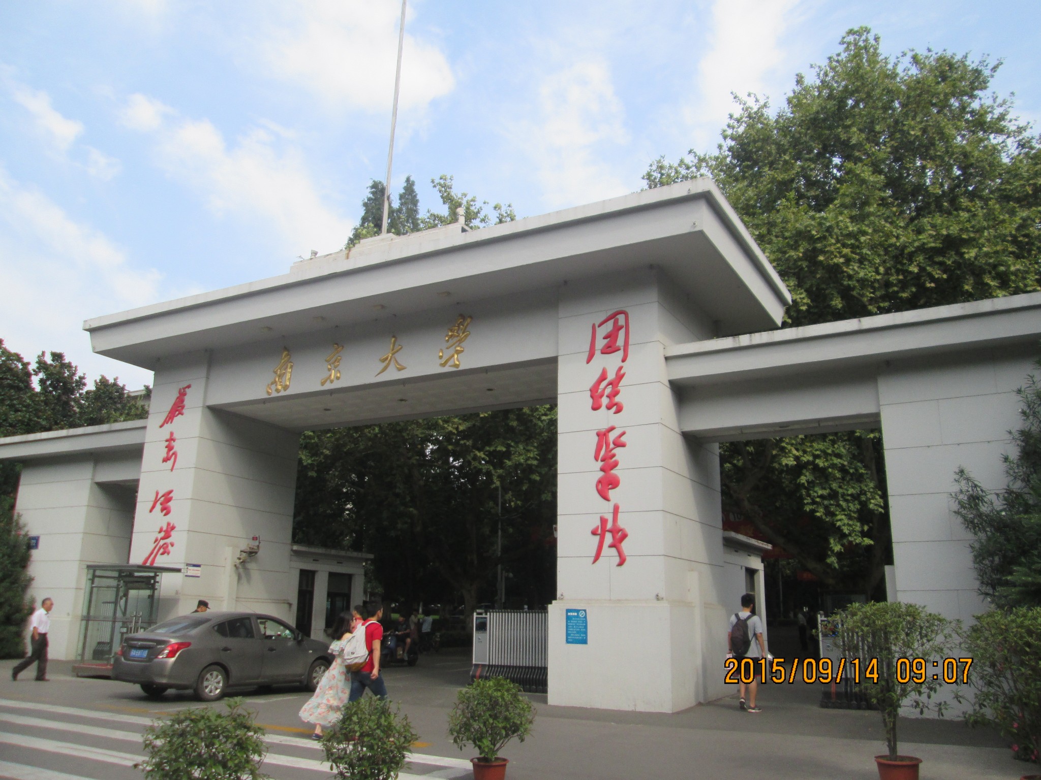 大学鼓楼校区——校门(南大的这个校区有一个特点,宿舍区和教学区是分开的,然后就隔着一条马路……我们去的时候先是到了宿舍区,然后苦苦找寻北大楼的身影,最后才猛然发现,原来教学区在马路对面的教学园区里……醉醉哒)