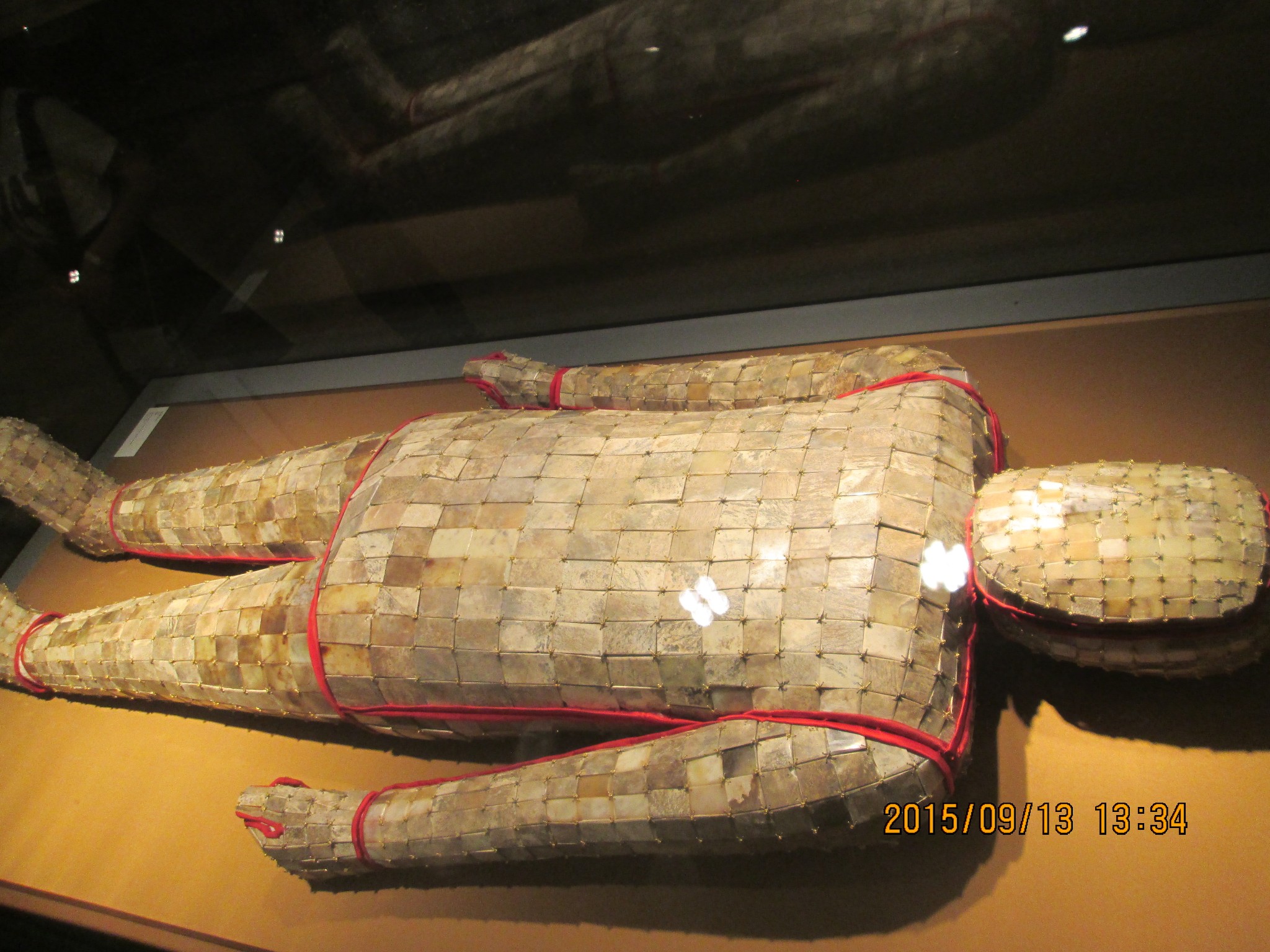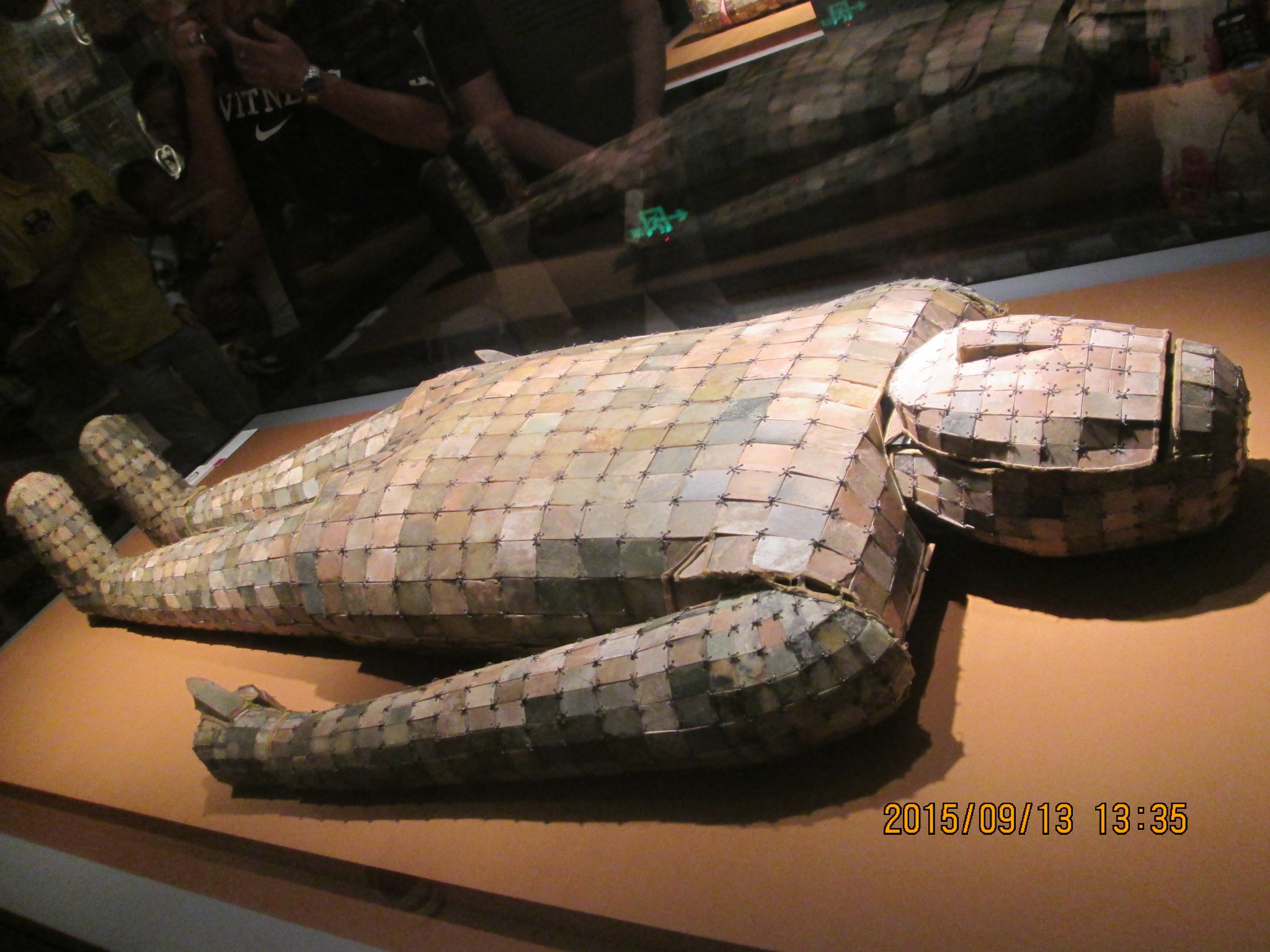 博物院——金缕玉衣,是我在南博最喜欢的藏品了,和之前在国博看见的那间金缕玉衣的制式还是有一些不同的,这外面感觉加了个小马甲,哈哈,金缕玉衣科普一下,是汉朝用的比较多的,在当时被人们认为能维持尸身不腐的玉衣,说到这里,这是做什么的大家应该都知道了咯,哈哈,不过这玉衣的珍贵注定了只有王侯将相才能享用咯~