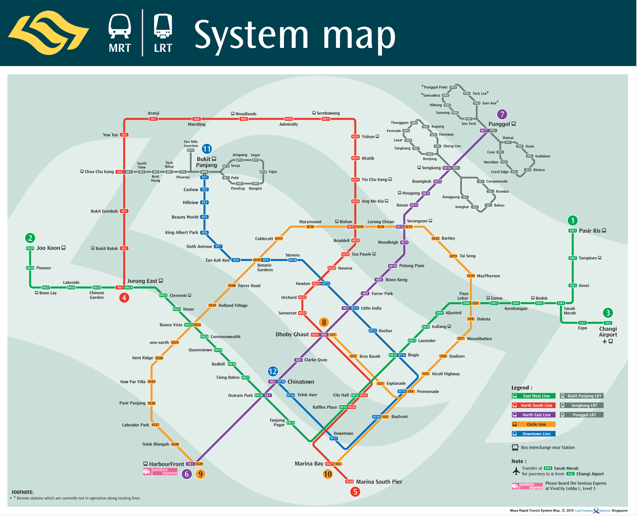就是这样一个小小的城市,点状式发展,发达的交通与建设;因为小,所以利于国家管理;因为小,一个你以为只是个“居委会大妈”的人,却是一个货真价实的国会议员;因为小,每到假期出行,本国人都是轻而易举的出境旅行;因为小,所以有的购物中心可以横跨两个地铁站....1)从航班来说,从国内可以直飞新加坡的城市不少,除了北上广,还有、、、、等等;航班时间从3个半小时到6个小时左右不等,总的来说算是个中等距离的海外目的地。航空公司有五星级航空公司新航,也有廉价航空酷航、虎航等;有时候遇上航空公司促销,可能会遇到非常心仪的价格。2)从天气来说,新加坡地处北纬1°,靠近赤道,热带海洋气候;常年25-32度。即使是国内热的不要不要的时候,新加坡也只是32-33度左右,外加强劲的室内空调,妈妈再也不用担心我被晒傻了。而在国内冷的不要不要的冬天,新加坡也只是爱下雨的雨季,26-31度左右。新加坡的天气预报基本上永远都是那一种标志,雷阵雨。但真正下雨的次数则是看情况决定的,什么情况呢,那就是运气....不过在东南亚地区完全不太需要担心天气的问题,下雨来得快、走的可能也快;压根说不准的。早上看万里无云,说不定过2个小时就开始下暴雨也是有的;也有可能一整天都是积云,但一滴雨都不会下的情况。所以,你可以选择火辣辣的夏天来新加坡感受GSS(Great Summer Sales)的疯狂折扣季,也可以选择梦幻的圣诞节来新加坡体验热带的“雪花纷飞”。因为一年中的任何一天,对新加坡的天气来说都并没有什么差别。3)从语言来说,新加坡是一个多语言的国家,拥有4种官方语言:马来语、华语、英语和泰米尔语。《新加坡宪法》明定马来语为新加坡的国语,主要是尊重当地原住民所使用的语言。但由于内在和外在因素的考量,新加坡采用英语,作为主要的通行语和教学语。然而因为新加坡拥有大约70%的华人,所以这里会说华语的人也很多,但是并不是我们所熟知的普通话,因为他们的华平参差不齐,所以大部分人更擅长中英混杂、可能还带点话;而那种英语,则是新加坡特有的Singlish。但是,当你来到新加坡旅游,尽管列出中英文目的地名字对照表,然后用中文开口问路就好;10个人里面,要遇到5个能跟你交流、给你提供帮助的人还是没有太大问题的。所以,即使你是一个人出行,不管你是否会英文,在新加坡都能玩的愉快,也不会感到太多的不适应。4)从签证来说,新加坡是电子签证,目前不能自己递交申请,只能通过代理旅行社办理签证;不同的代办机构需要的资料不同,这里不好一概而论。但总的来说需要的资料还是比较容易准备的。另外的重点还是:1.不要提供虚假信息和资料;2.证件照一定要按照要求准备。新加坡的签证即使是按照家庭提交,也是按个人审核,所以若出现父母的签证被拒签,小孩的通过也是正常的。签证是否通过看的还是运气...无迹可寻。因此,不管你是一家人还是一个人,签证官都是以个人来审核签证的。5)从城市交通来说,新加坡的地铁建设依然处于ongoing的阶段,这是截止2015年12月的地铁路线图,