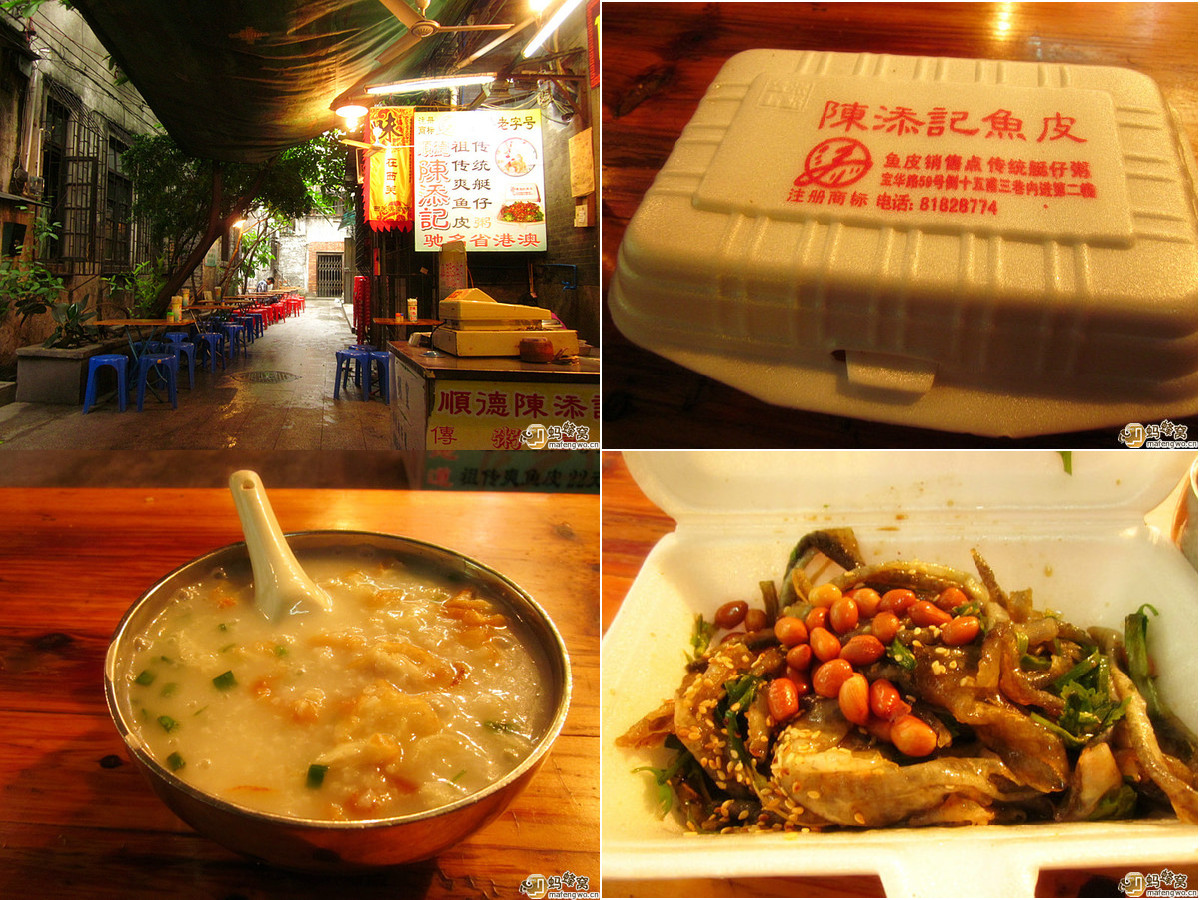 从顺记冰室出来就去了陈添记,两家店离着也就几十米!早晨九点多的光景,暖暖的灯光,温馨的小铺,而且就我一个顾客...这次点了爽鱼皮和艇仔粥,早餐还是喝粥最养胃了!说实话,我从小就不太爱吃鱼皮,可是去之前看到很多人推荐,本着出来玩就要敢尝试的态度,点了一份爽鱼皮,真的不错,很脆也没腥味,十分爽口,价格是22元,真不知道现在涨价没~