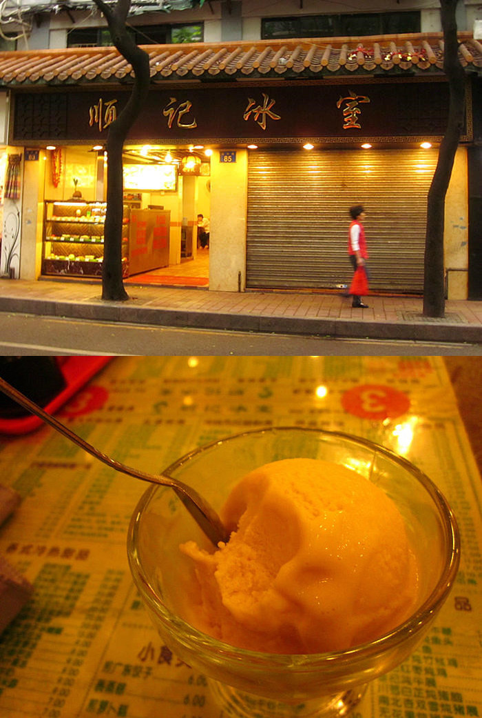 好啦,说完沙面,我们再把话题拉回上下九,来说说我这一天的美食之旅!下车看到的第一家就是顺记冰室,他家招牌的就是榴莲雪糕、芒果雪糕,我对榴莲无爱,所以就选择了芒果雪糕。不过因为是空腹状态,所以也不敢吃太多冰的东西。