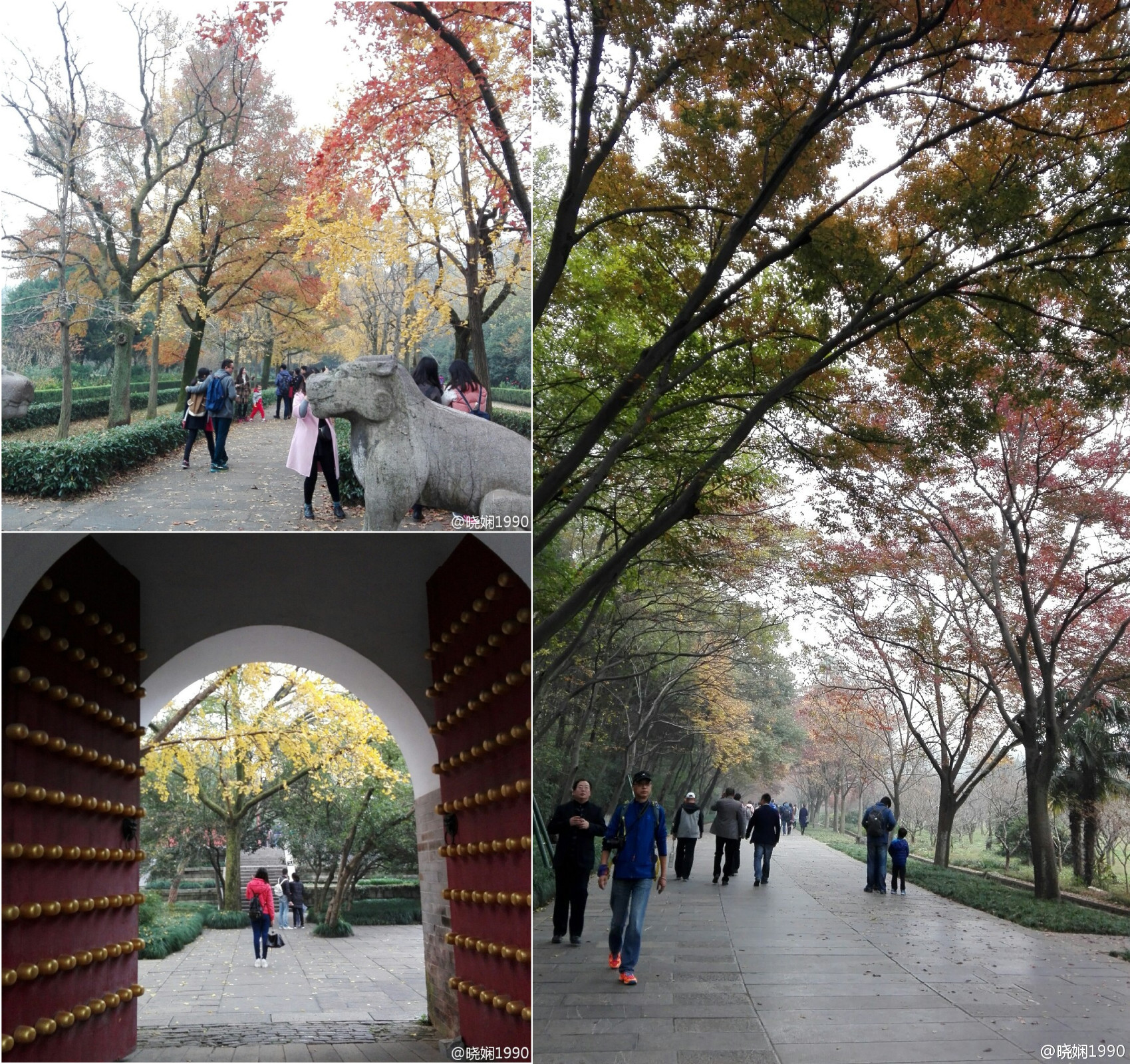 在景区里逛的时候,开始下起了小雨,景区里很多石板路,下了雨之后就特别的滑!我从明楼那边出来的时候,走在我前面的是一对母子,小朋友大概也就四五岁的样子,妈妈正在和小朋友讲,下雨了路上比较滑,让他小心一点,我们当时走的那段路有点小坡度,我脚底有点打滑,虽然有努力hold住自己的身体不摔下去,但是还是没有办法控制自己向下滑的趋势,然后我就慢动作的滑坐到地上了,走在前面的年轻妈妈回头看了我一眼,就和小朋友讲,不小心走路的话,就会像我一样摔跤了。我就这样成了华丽丽地反面教材!!!心疼自己30秒~~~后来我去石象路那边看秋叶,遇上好几个也是独自出行的路人,让我帮忙照相,其中就有一位大姐和我说:咦?之前是不是我帮你照过相?我:恩?没有啊....然后大姐还回头看了我好几眼,我想我应该是太大众脸了...不过秋天的石象路真的很漂亮啊!