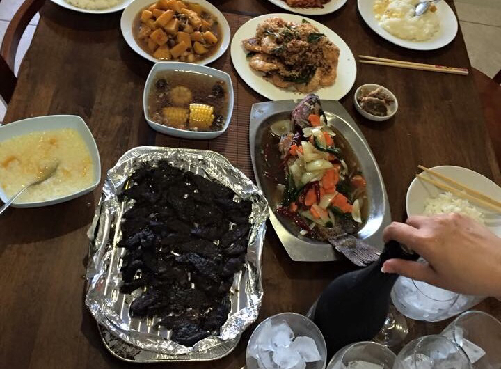 照片左下角黑色的就是烤袋鼠肉。