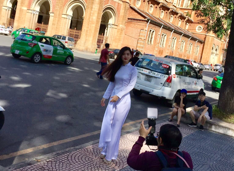 胡志明那个教堂外面再拍片的奥黛姑娘。这不是我的美奈越南美女哈。