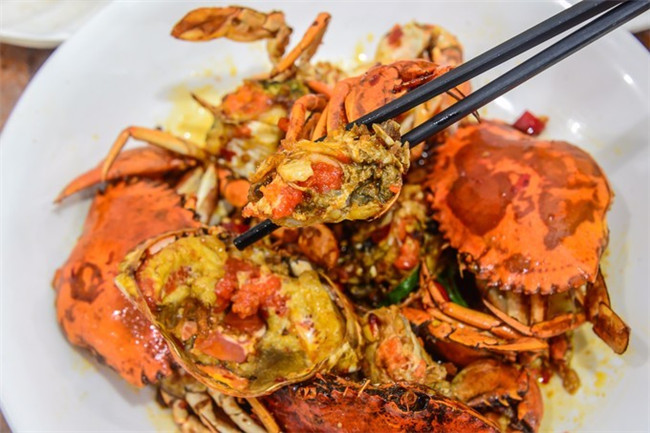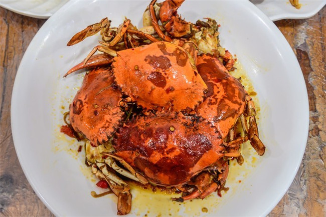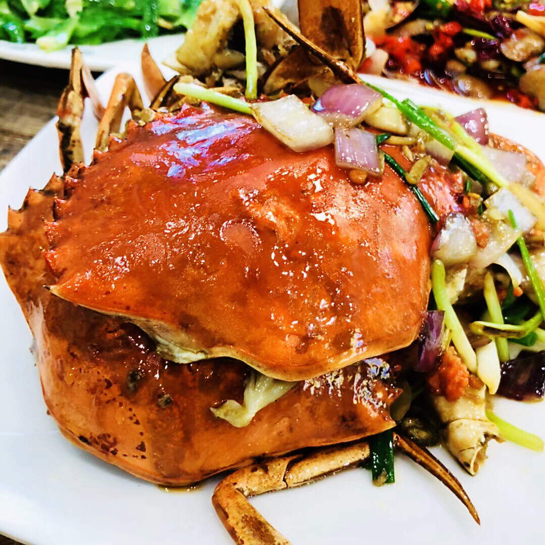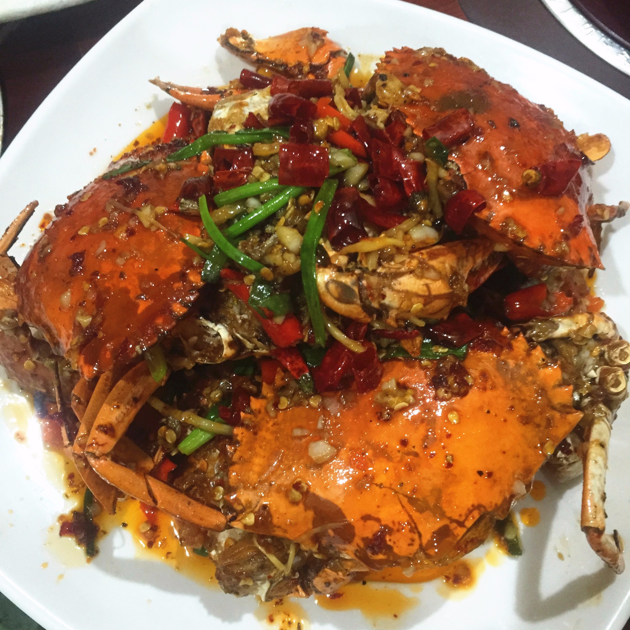 麻辣油焖蟹,每只蟹打开都是红彤彤的蟹膏,散发着诱人的 光泽 !蟹肉的鲜香,在花椒、辣椒的助攻下,更为突出。本来就爱吃辣的我们,真的是吃得过瘾,辣得过瘾!