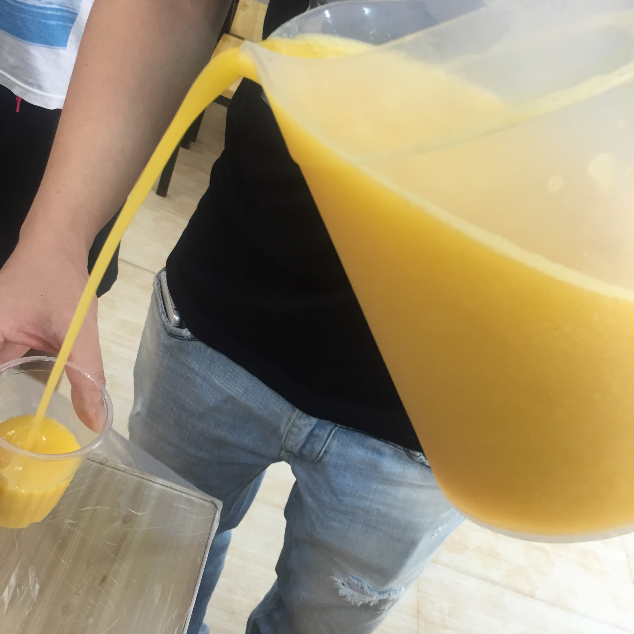 黎记甜品这个是芒果味儿的~海南粉物如其名,是 海南 本土小吃里面最具代表性的。在 海南 的街头巷尾经常见到,但是做得正宗的是极少数。这是许多 海南 人记忆力最诱人的一道美食。几块钱一碗的小吃,制作过程确实颇多讲究,甚至极为复杂,地道的老店( 比如 海口 老街)往往都有秘方,难以模仿。首先是基质,也就是所谓的“粉”。是将大米磨成的米浆,过滤、过筛、经沸水烫熟凝固制成的米粉条。这种米粉一般粗细和牙签差不多,甚至有的比牙签还细,也就是说, 海南 粉的主要成分是“米”,这是和“面”的主要区别。相对于面条,含水量更大,口感更爽滑再说 海南 粉的配料,亦十分考究,最多的有十几种之多。但最基本的都有蒜泥、芝麻碎末、豆芽、牛肉干炸鱿鱼丝、油炸花生米、炒芝麻仁末、碎香菜 、竹笋这几种,每个店家在这个基础上,还会添加脆炸面片、鱿鱼干、酸菜等,可以说是乱花渐欲迷人眼。丰富的配料是 海南 粉美味的重要因素。而其中配料中的锦山牛肉干,也就是下图中黑色的肉条,在 海南 粉配料中占据重要地位。锦山牛肉干,选自海南 本地的黄牛肉,经过考究的手工腌制方法,成就韧中带软,肉脆味美、香甜适口的牛肉干,地道的锦山牛肉干不含任何添加剂