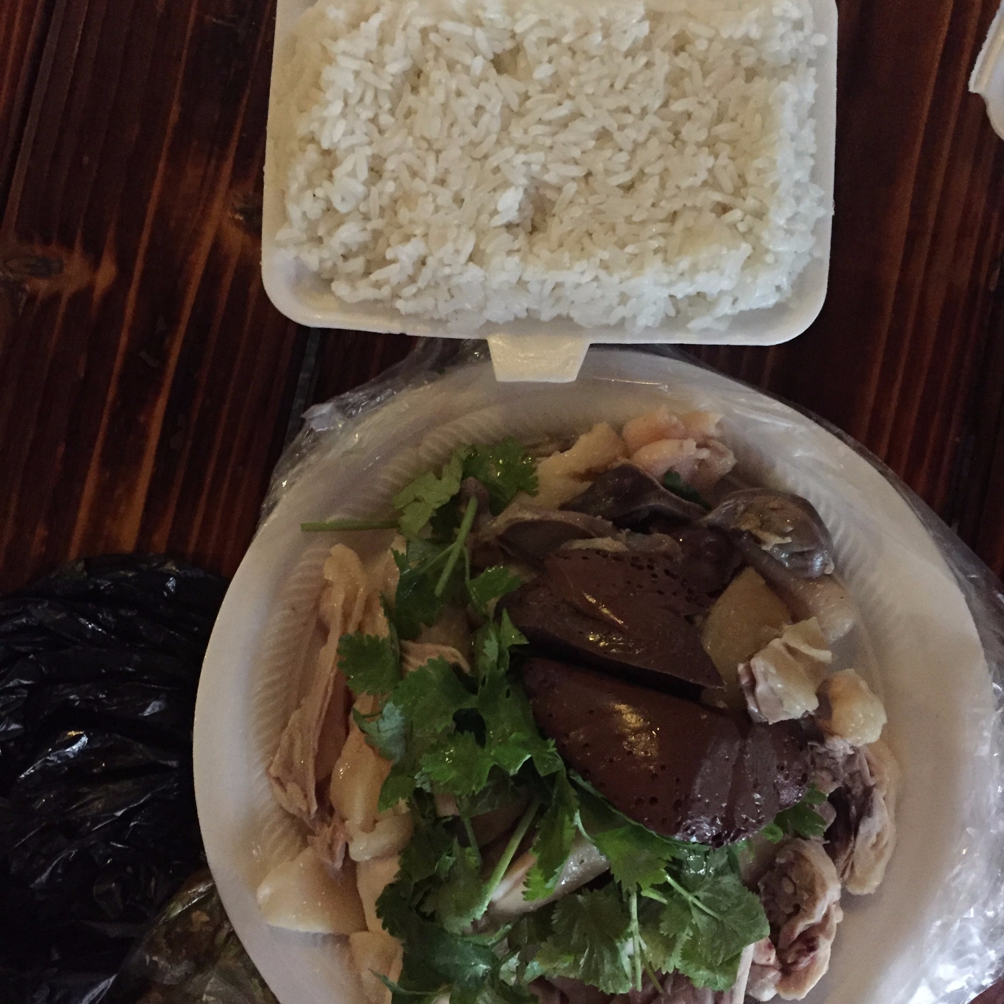 特色的炒冰是以新鲜水果为原料的,其实每个店家炒冰机都差不多,如果说出品有区别的话,主要在于水果的新鲜程度。这家的炒冰一直采用新鲜优质的水果榨汁,做出来的炒冰充满天然水果的鲜甜,散发清爽的香气 海南鸡饭海南鸡饭的名气不用我多说,起源于 海南 的 文昌 市,在 东南亚 等国家都广为流传。鸡饭,也叫做鸡油饭,原料是鸡和大米。大制作法是:先将整只鸡放入沸水煮煮至鸡皮变黄,随后细火慢煮,等熟(约八九成熟)时捞起,也有的做法是七成熟。捞出的鸡肉斩件,即是白切鸡。保留鸡汤备用。接下来是炒米,猛火热锅中下鸡油、蒜茸爆香,随后倒进洗净滤干的大米翻炒,再加鸡汤调匀,加盖煮熟。整个过程除了精盐和少许味精,几乎不加调料。煮出来的米饭每一粒都浸透鸡汤的香味