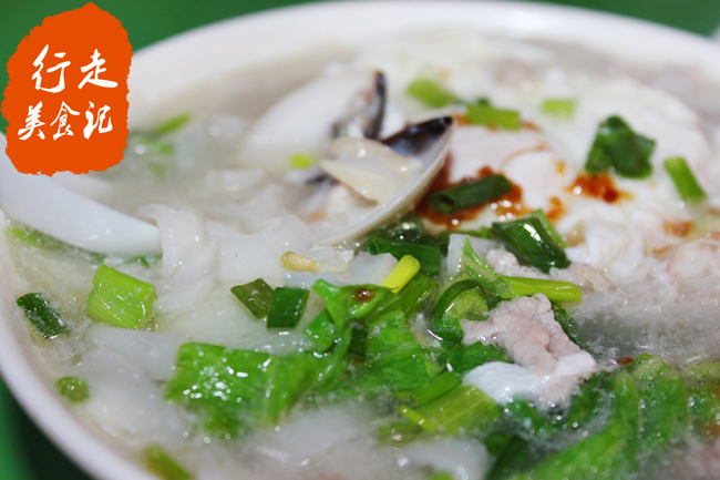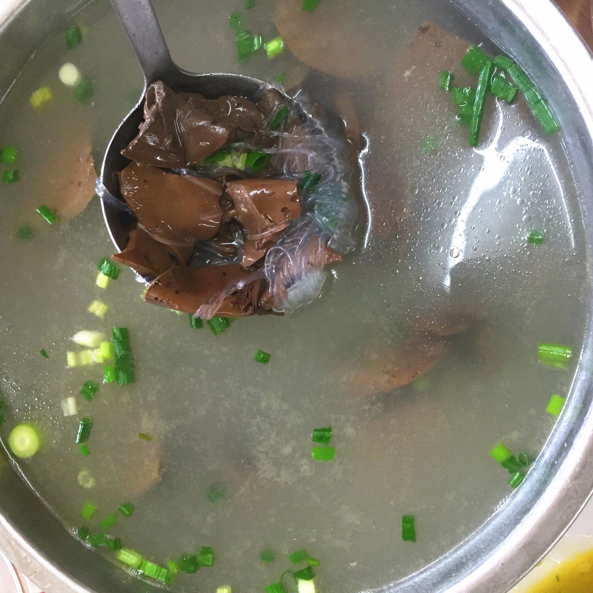 相对于后安粉,港门粉的汤色比较清,而米粉稍微软一些。整个体验爽滑、开胃辣椒等配料一般都是店家自制的港门粉推荐地址:解放路(明珠广场对面) 儋州 3巷另外一家也是在附近,解放路第二市场正门斜对面,正宗港门粉鲜鱼汤店海南传统粉条汤其实和港门粉、后安粉差不多,同样是属于粉汤,基质是米粉,但区别在于汤底的配方。我把这种用瘦肉、猪骨和海螺(一般是海白螺)为主要汤底食材熬制的,叫做 海南 传统粉条汤。因为这个种类在粉汤里最常见,也最为经典,也是我们童年记忆里最久远的味道。与后安粉还有个区别就是,传统粉条汤是放蔬菜的,一般是青菜或者白菜。而后安粉汤一般只放葱花,不放蔬菜正宗的传统粉汤里,海白螺是必不可少的,在浓郁的骨汤中,增加一抹鲜甜。汤底是熬好的,煮的时候再加 上海 白螺、猪肝、青菜、鸡蛋、酸菜等,和粉汤一起煮,大概五分钟就可以出锅了,再浇上一勺蒜头油,那滋味真是太赞了