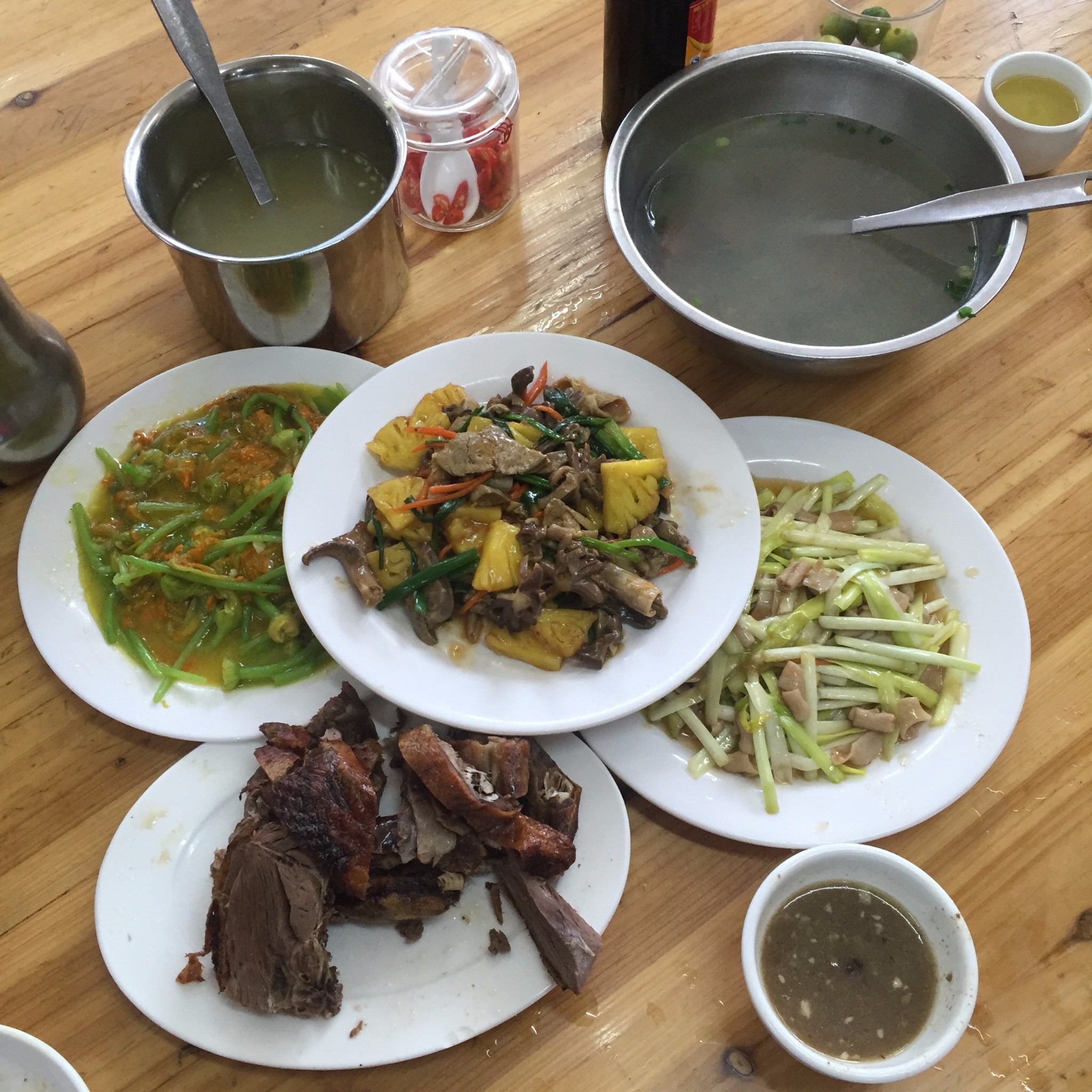 阿婆东山羊肉店市区的饮食大致就这么多,对于游客而言,我尽力了另两篇就是针对 的渔村和 自驾 环岛其他饮食PO一些别的饮食吧~~浩仔烤鸭店主要买叉烧和烤鸭,还有些家常菜,最主要的特点就是性价比超高,而且饭菜味道也还可以叉烧饭15元一份,性价比超高。这烤鸭、叉烧、排骨什么的这一份也就是20元左右,很便宜北方人虽然不这么吃烤鸭,但是这样蘸着酸梅酱吃还蛮好吃的。
