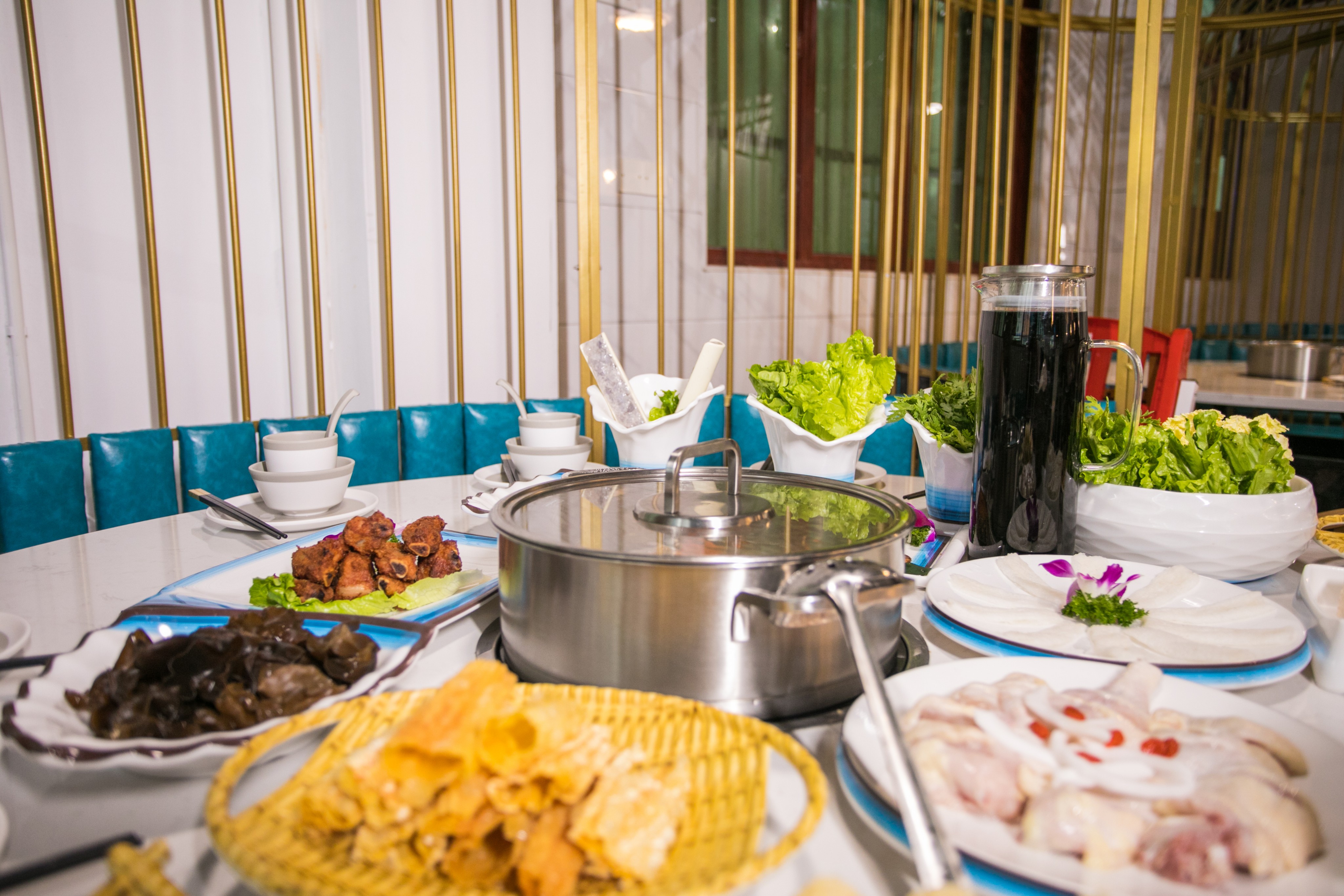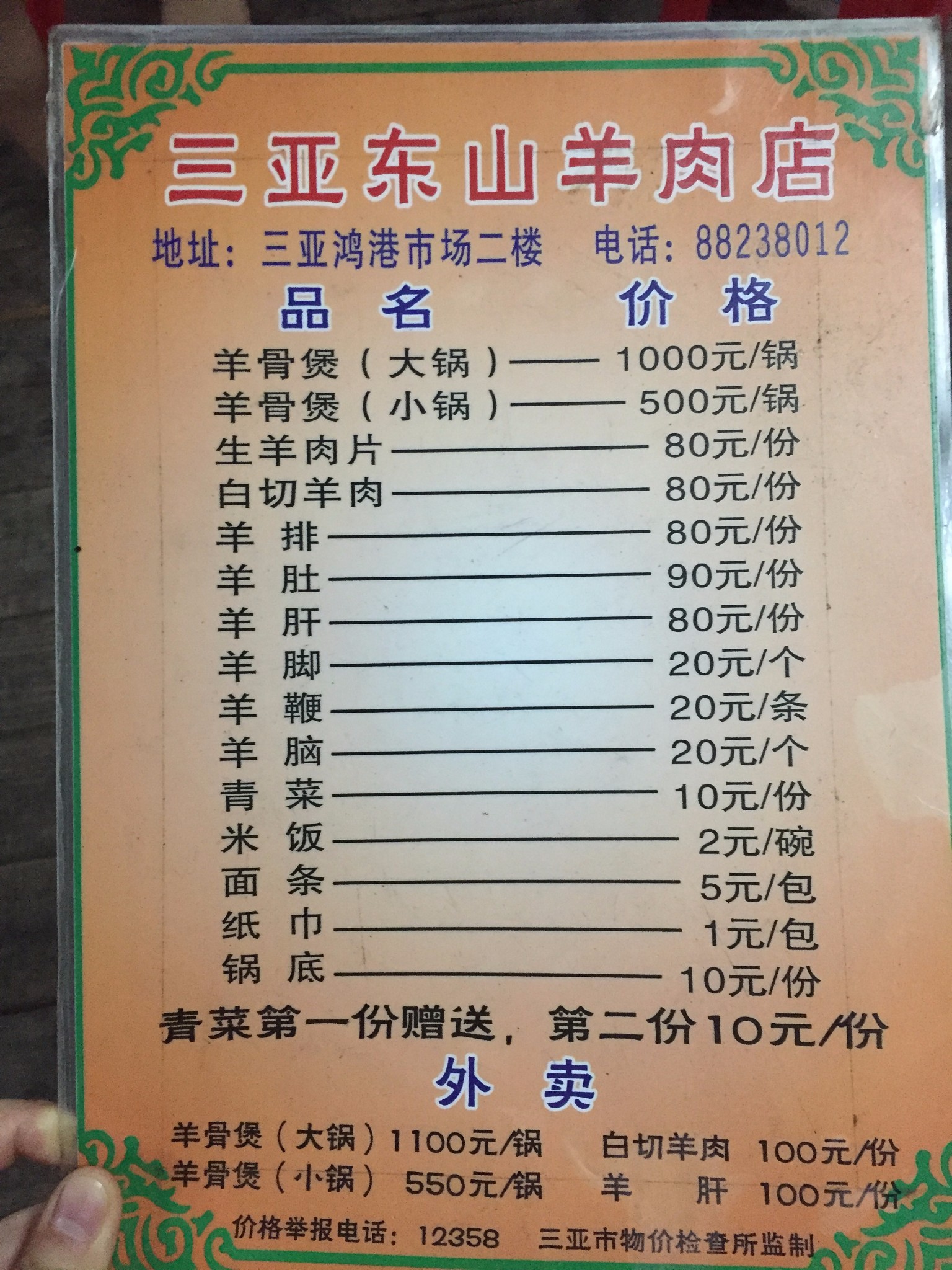 琼海鹅嘉积鸭饭店阿婆东山羊肉店阿婆 东山羊肉店 的一家明星羊肉馆子,大排档的环境,50个桌子坐得满满的,翻台率也很高,生意爆好,墙上也挂着和明星的合影。看着这家火爆的生意我就一个想法, 海南 就这么大点地方,感觉所有的羊都被这家炖了。白切羊肉,卤过的,没什么膻味,但又不失羊肉的鲜味,带皮的羊肉,也比较有嚼劲。羊肚也很劲道,人多可以选择羊骨煲,每桌会送一大筐青菜,基本够吃,没有萝卜、豆腐或其他菜,这里就是纯吃肉。人均略高,在150-200左右,但是吃的真的比较爽。