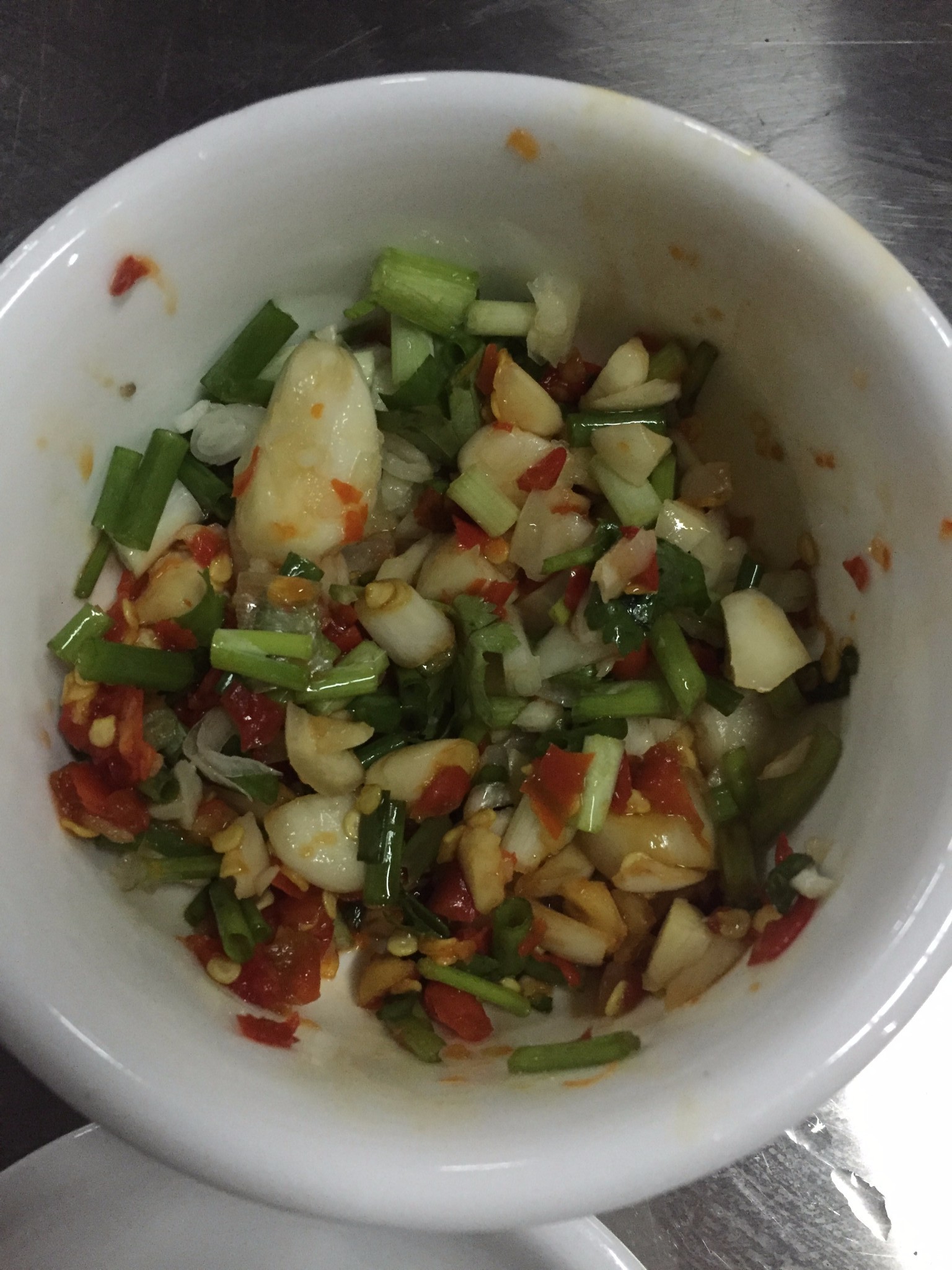 厨师的效率非常之高,果汁还没喝完,一桌的海鲜就基本上准备好了!事先问了我们的口味,知道我们能吃辣,特别给我们多做了几道辣辣辣的海鲜!